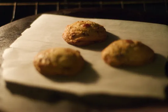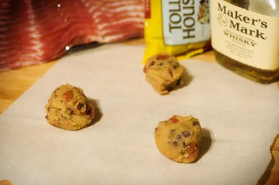 Stir in the cooked bacon pieces and chocolate bits. Drop by rounded tablespoon onto parchment-lined baking sheets at least 3" apart.