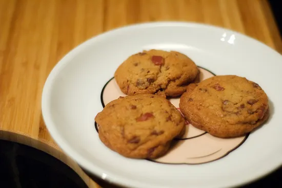 Bake for 9 to 11 minutes or until they turn into a golden brown, chewy, salty and sweet cookie with a bite of bacony excellence. It’s magic!
