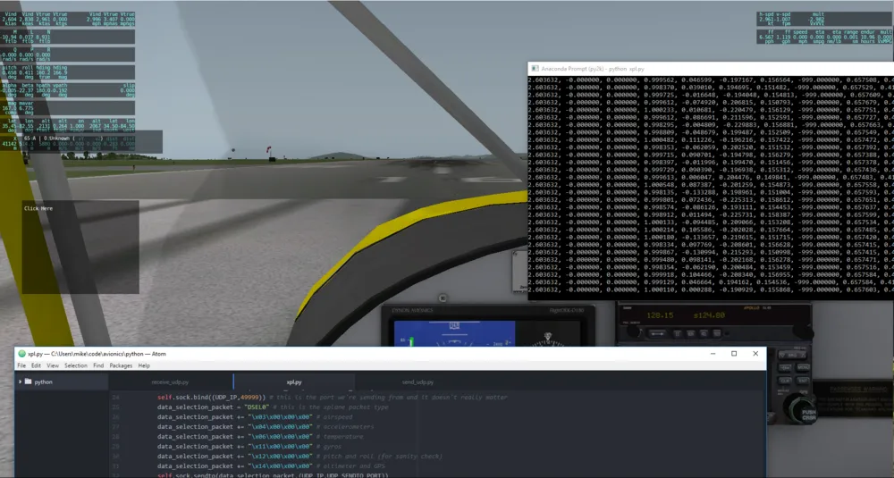 Anyway, here’s a screenshot of data gathering. I’m collecting about 50 data points 10 times per second. I’m feeding this into a learning algorithm to teach it to predict the actions which may lead to an accelerated stall and/or spin.