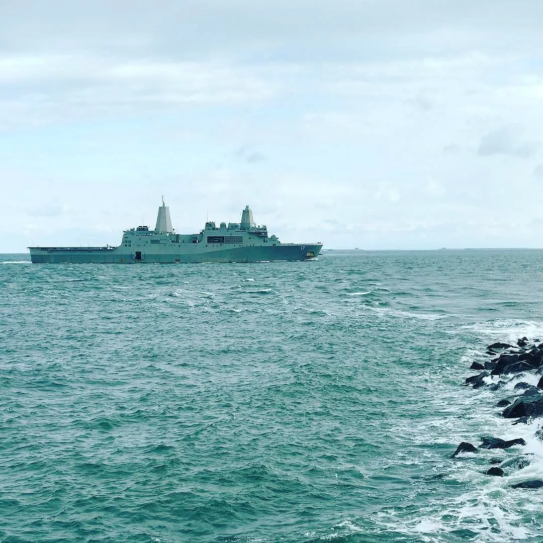 Caught the USS San Antonio leaving port this weekend.
