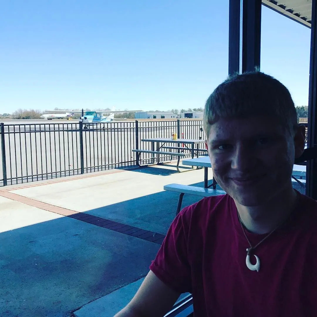 We got a table with the plane we took to this restaurant in Greenville in the background.
