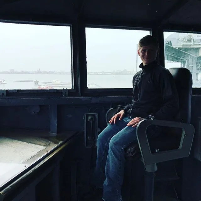 Caleb on his sit in all of the Captain chairs quest. This one is the USS Laffey