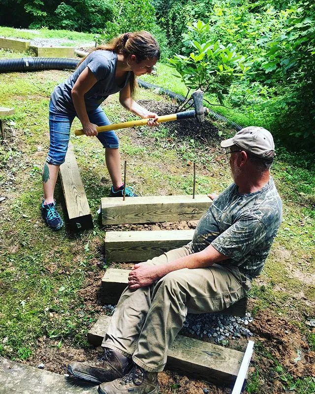 Couple of my favorite people are helping Grandpa build garden steps today.
