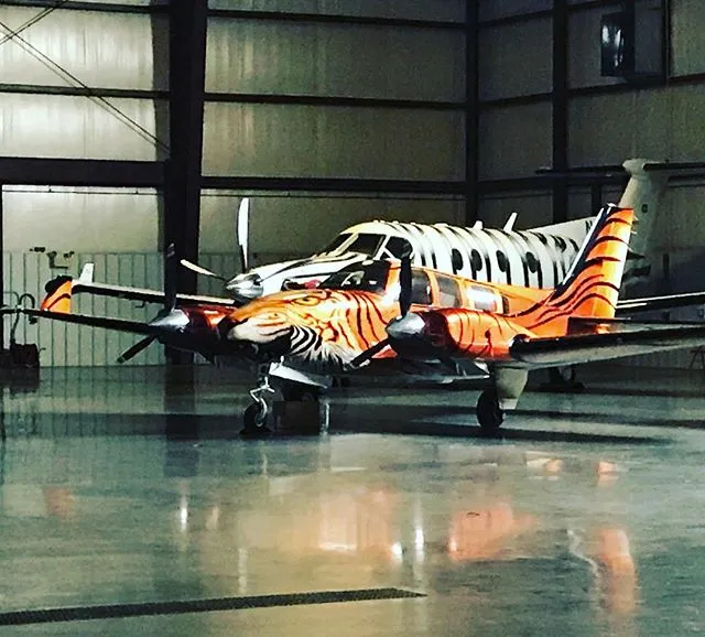 This is odd. In the same hangar as the Baron is a Pilatus painted like a Zebra. Welcome to the zoo hangar. #tigerbaron