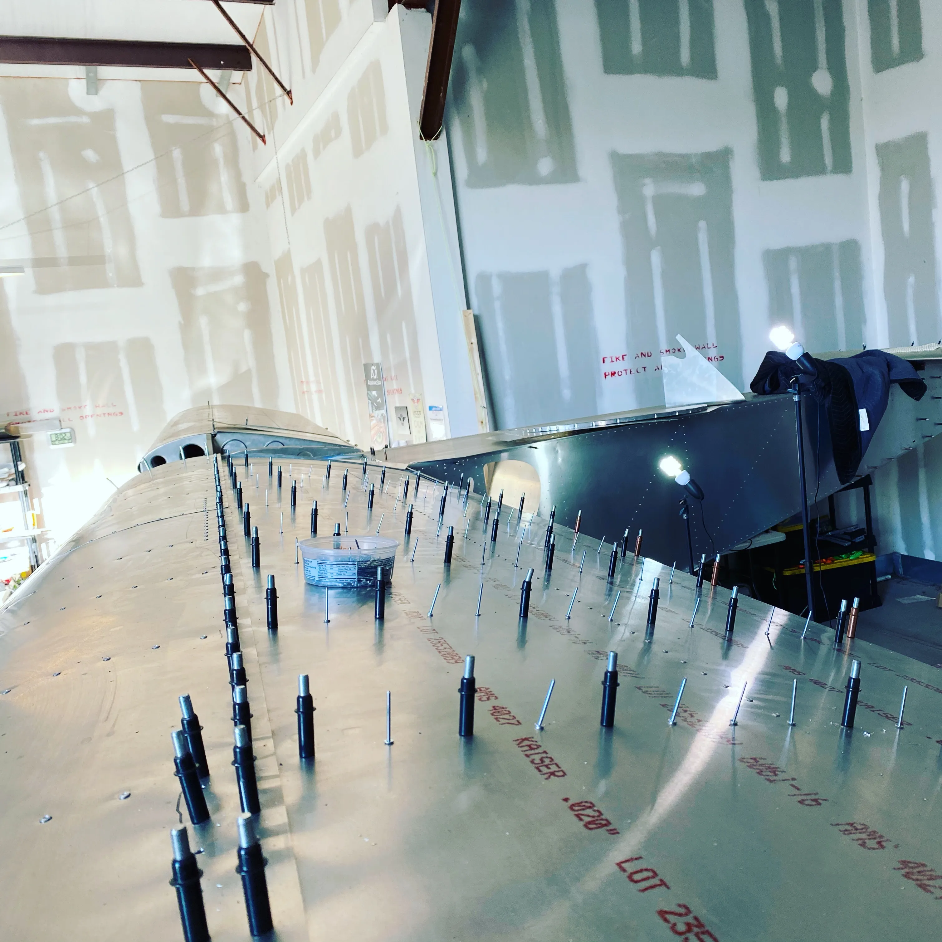 I left the pilot side top wing skin off to run electrical and pitot lines on this side. All done so it’s wing rivet day. #myzenith750