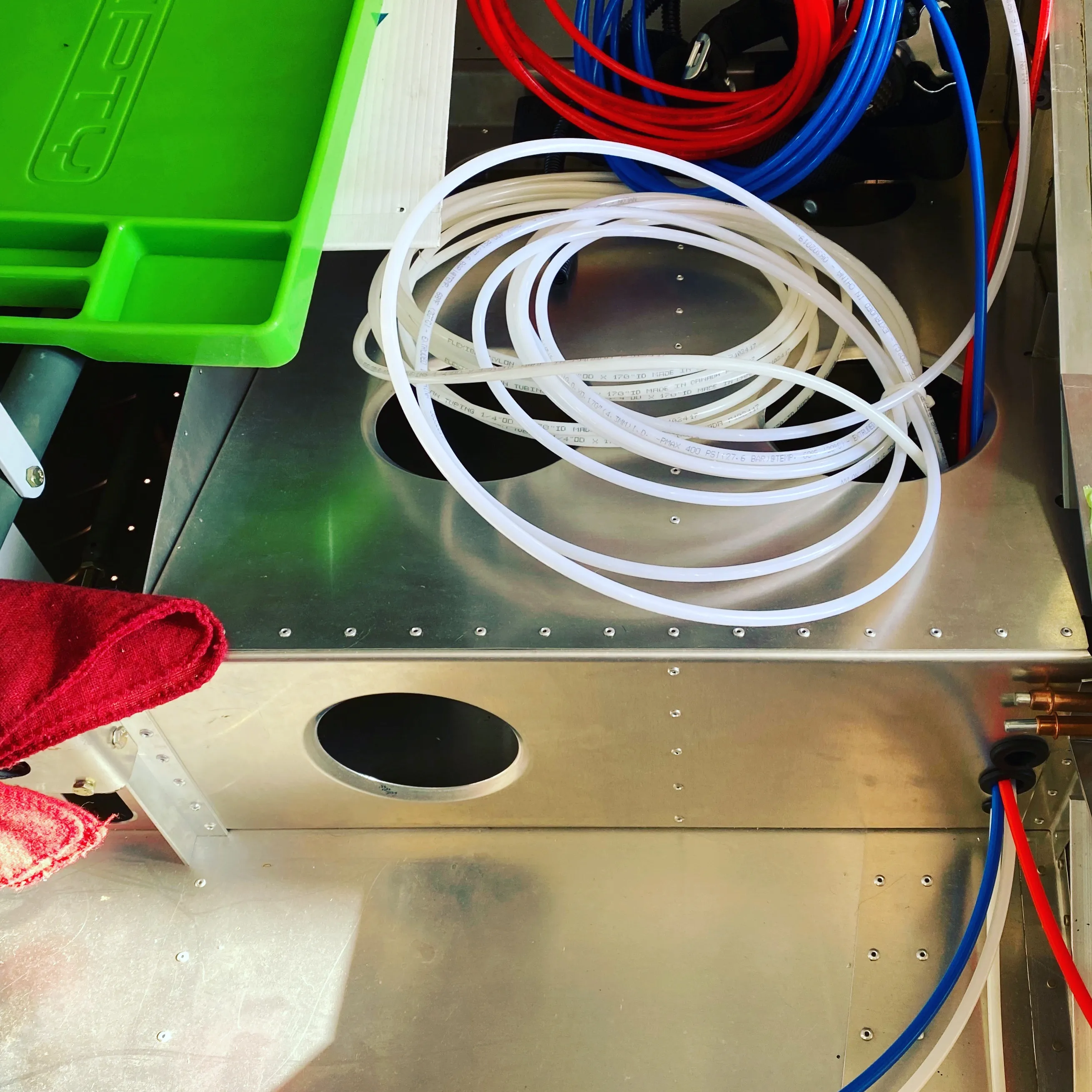 Left the house to come to work on this before 6 this morning as usual. Really didn’t feel like it this time but it’s not gonna build itself. Like my patriotic colored air/brake lines? #myzenith750