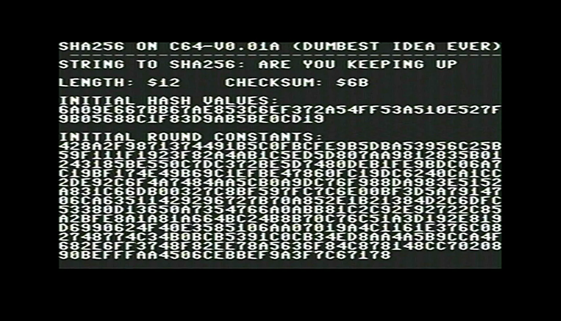 10 minute pre evening workout code progress: Well, now I'm down the rabbit hole. Steps 1-3 of SHA256 on a 40 year old computer down, about 300 steps to go. #commodore #c64