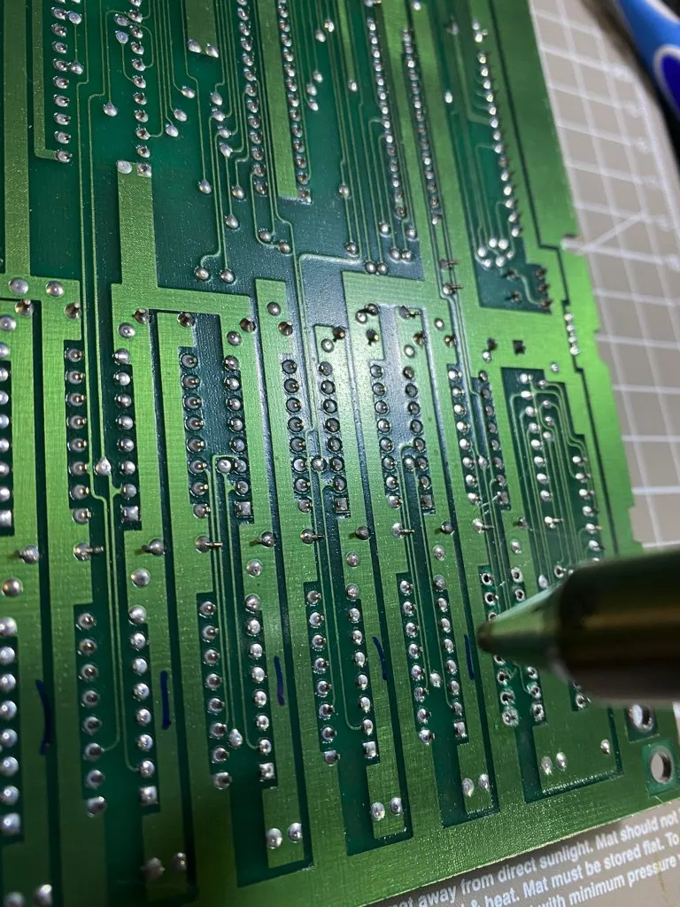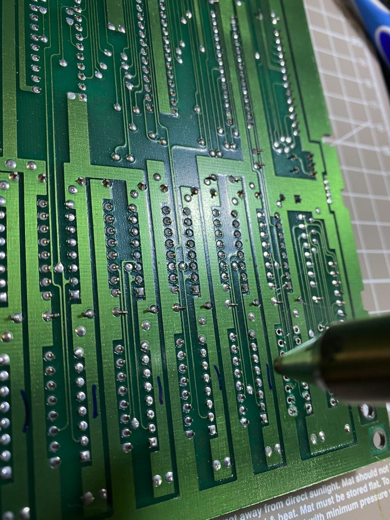 Desoldering 16 memory chips with 16 pins each is NOT something one should do when feeling impatient. I got them all without a single lifted pad. This 128 will live to fight another day.