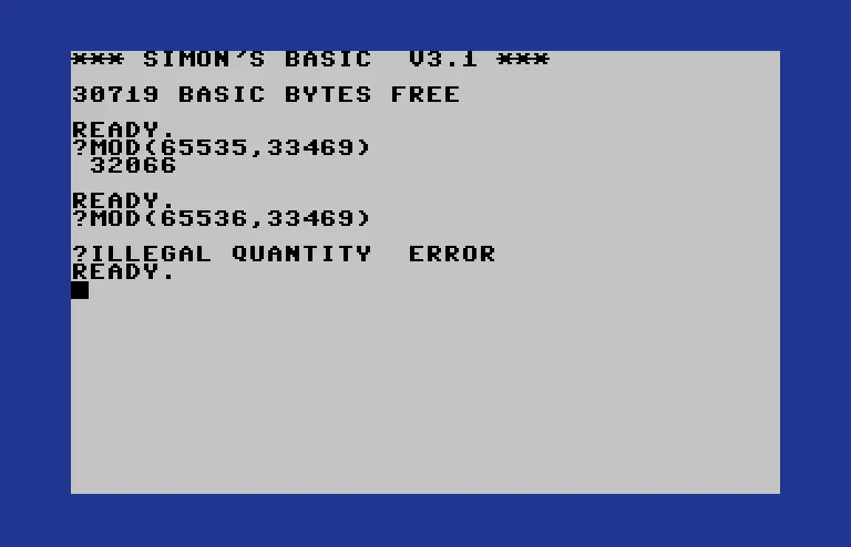 In case you were wondering, SIMON'S BASIC modulus is 16 bit. Imma need to implement my own to do the next cipher which needs at least 2^24 to match my assembly version
