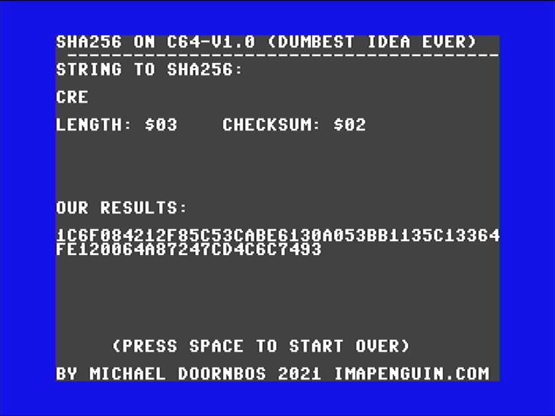 You haven’t REALLY lived until you try and demonstrate hash collisions using the bug repellent program from Ahoy! Magazine and a type in program called Salvage diver, then cross it with checksums and SHA-256.