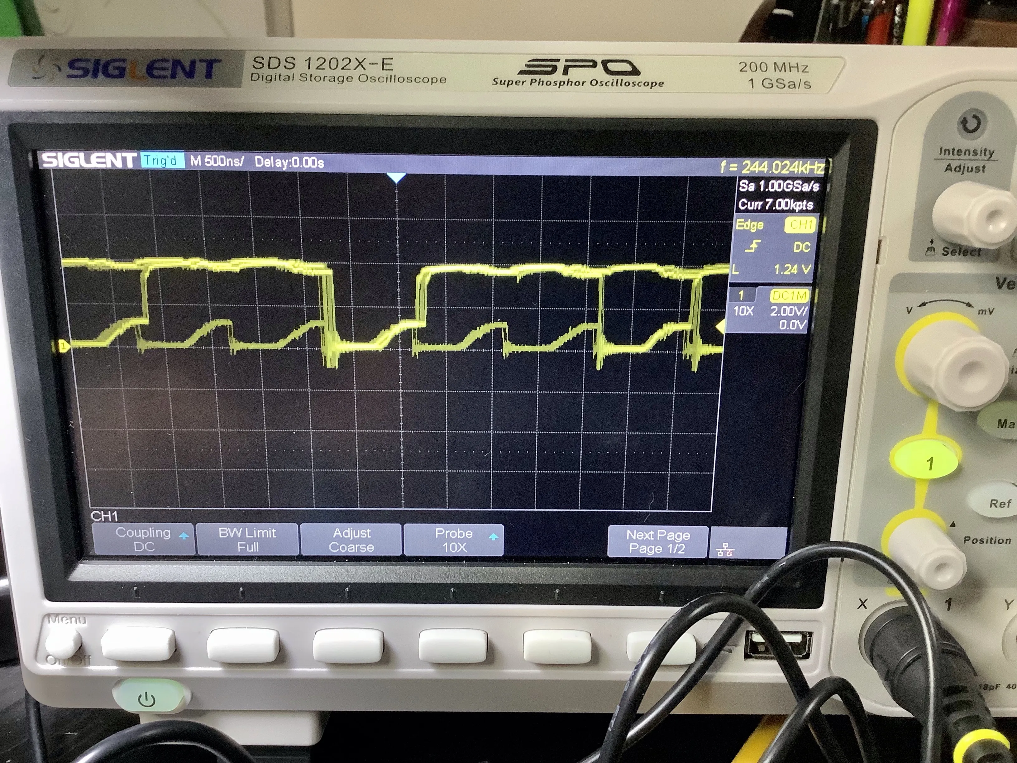 Well that doesn’t look anything like a square wave. Bad multiplexer. Saved a Vintage computer from the scrap heap with good tools and a 79 cent chip that is still being manufactured