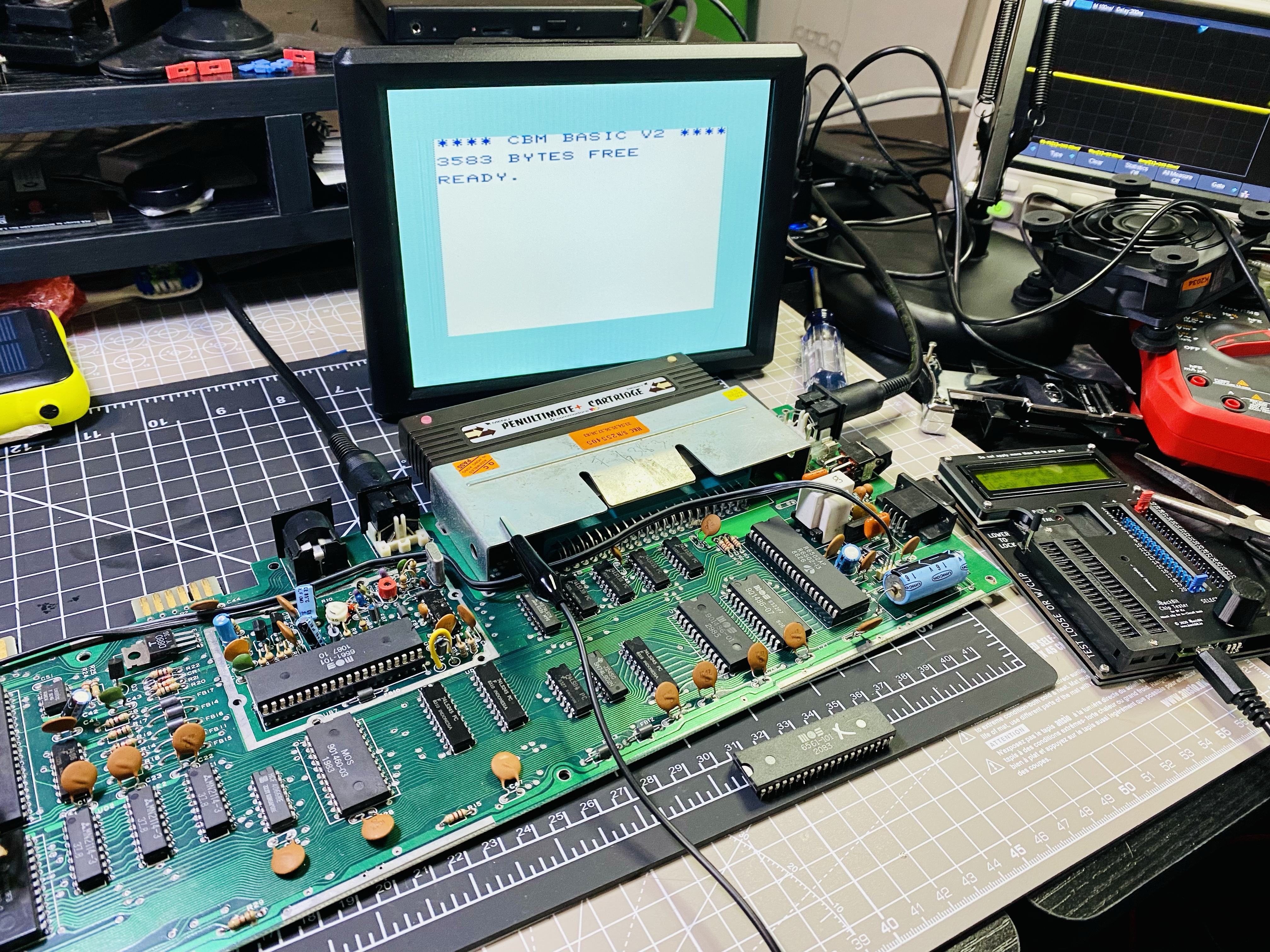 Brought another vintage computer back to life from the trash bin. Some probing around with the oscilloscope narrowed it down to a bad VIC chip. Desoldered, installed a socket and replaced it and it’s back in service.