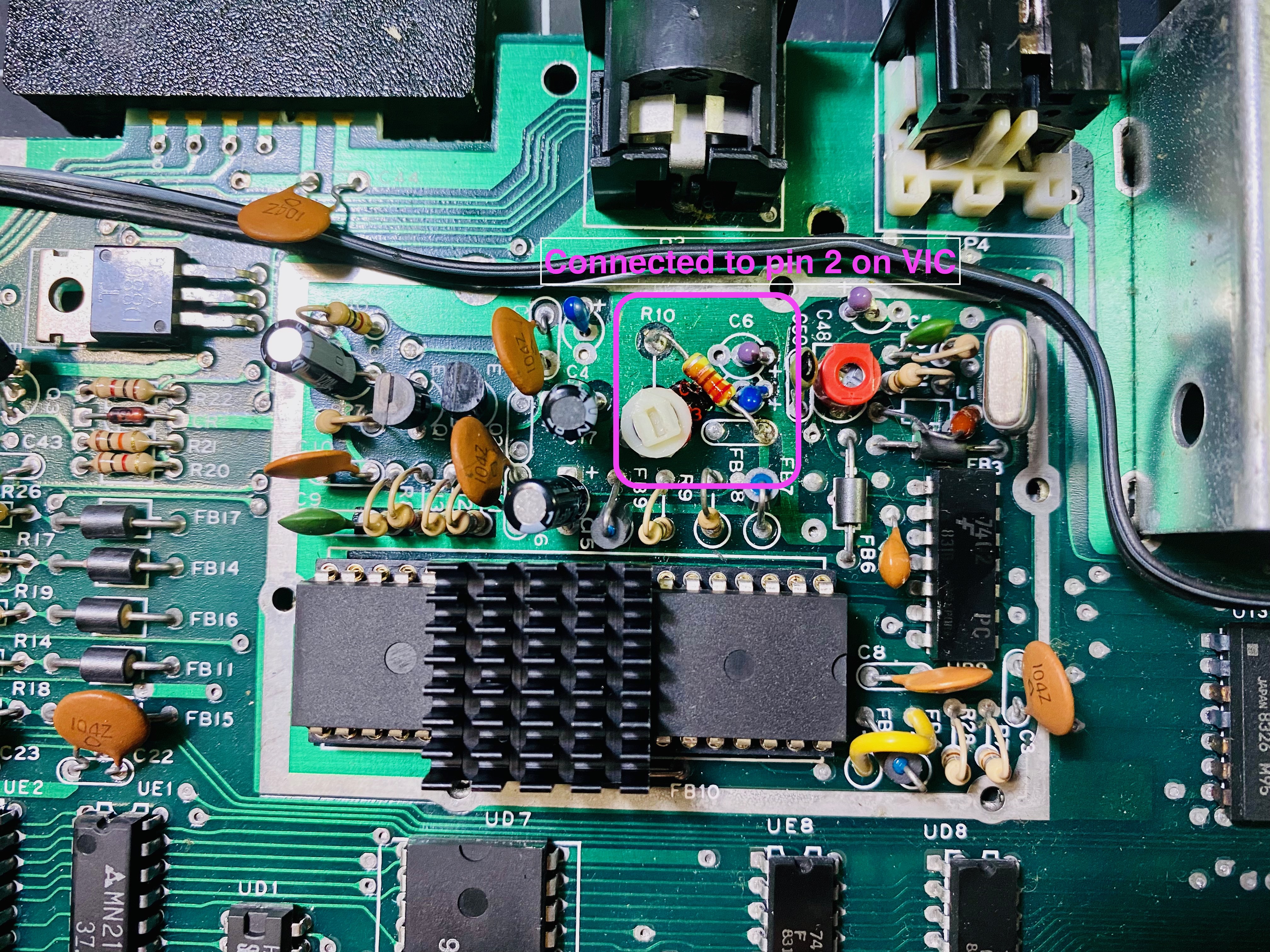 Interesting, removing this resistor and adding a 220uF cap across these two lines DRAMATICALLY improved this PAL VIC-20's picture. It's hard to tell from a photo of a screen, but this looks excellent IRL. Not 100% sure why this works...