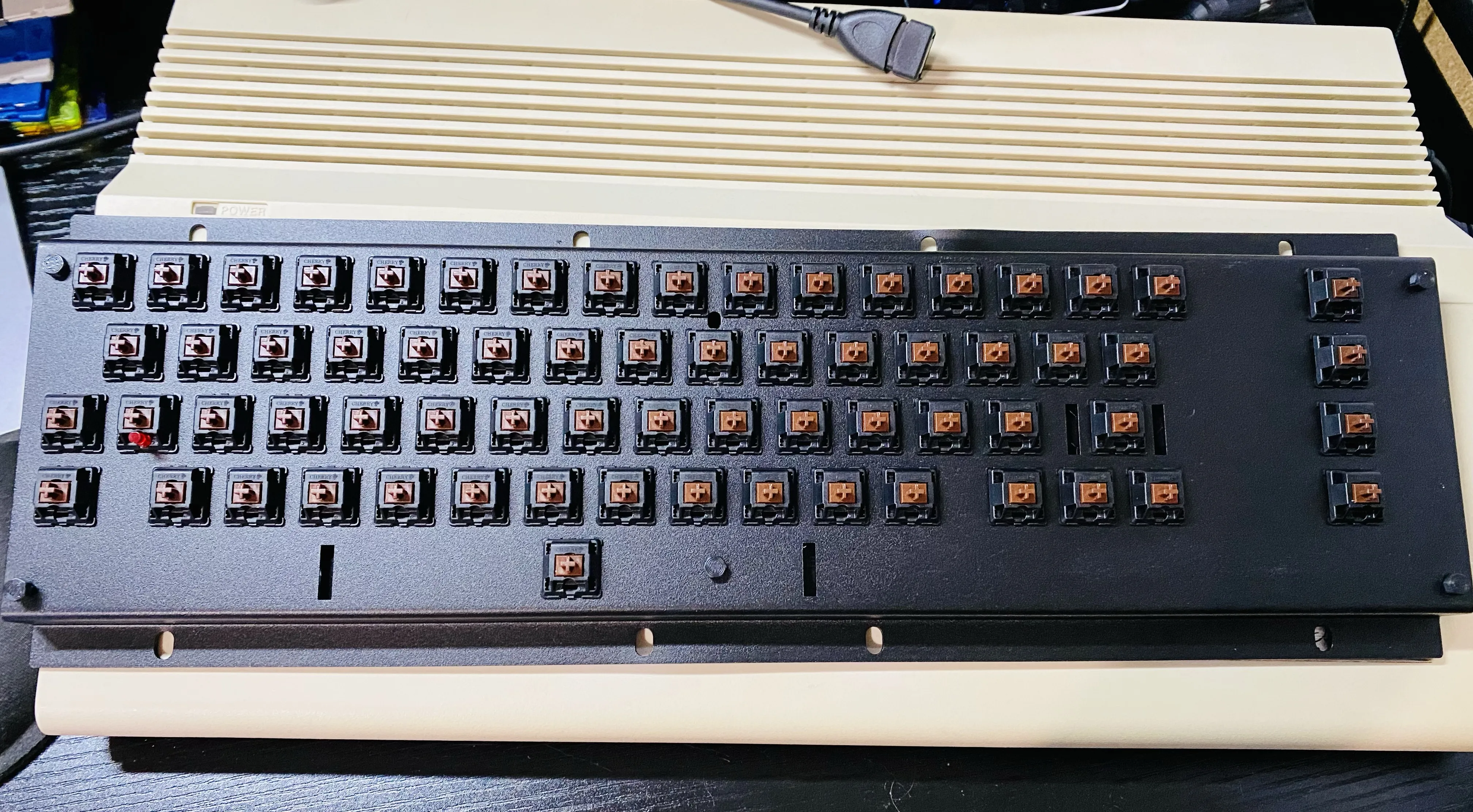 Mechboard64 is almost done. Need to print the key cap adapters and bend some piano wire. #commodore