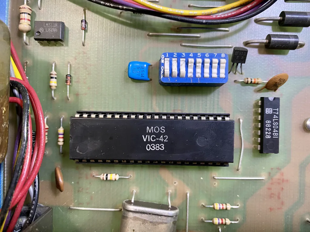 The mystery of the VIC-42 chip is much less interesting than I hoped. I happen to have an Alphacom VP42 printer. It has the chip in it
