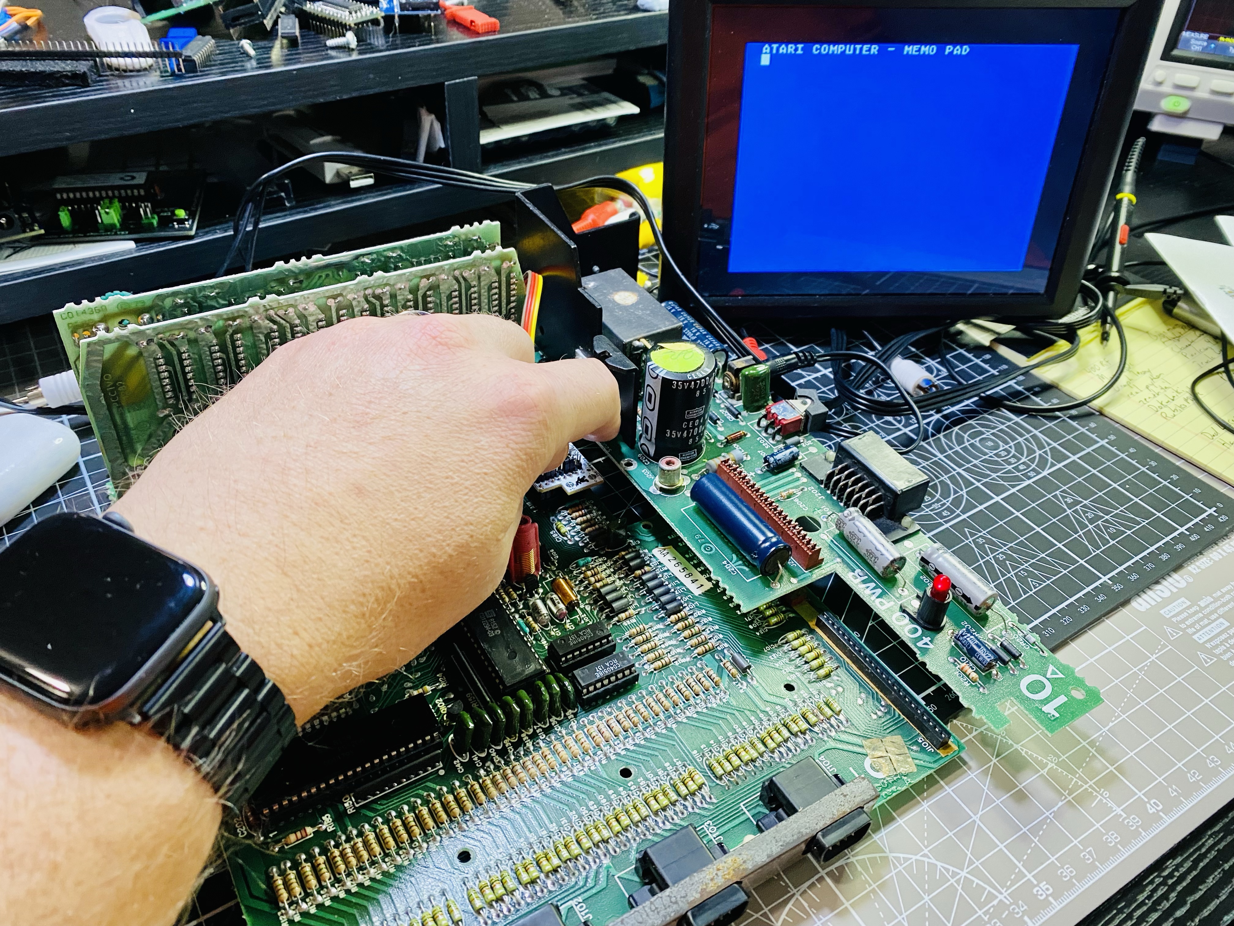 SVideo out on the Atari 400. Have to hold the cartridge port switch down when it’s out of the case to get it to boot but it’s working. #atari