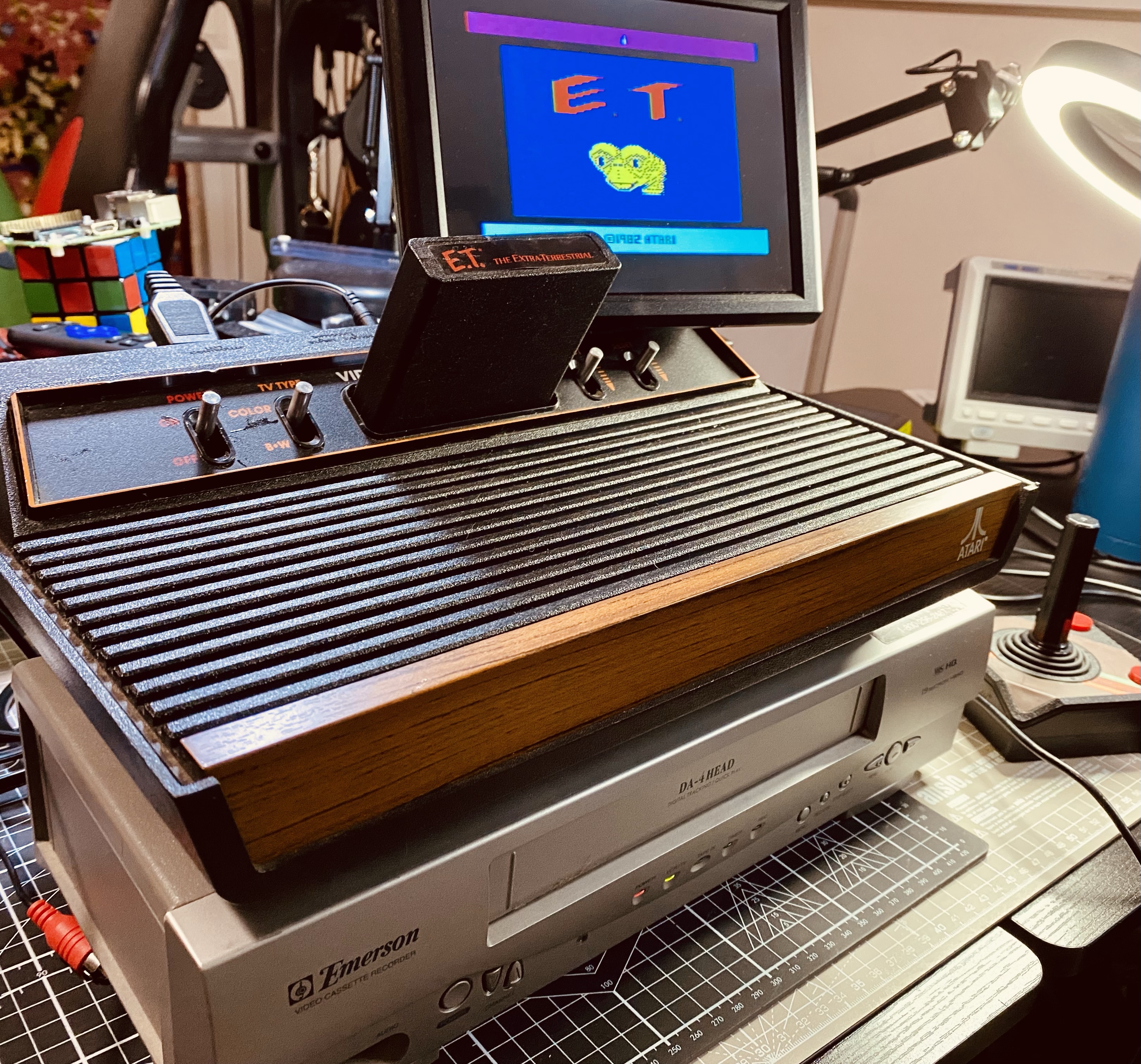I’m short a transistor to do a composite MOD on this Atari VCS/2600 so it’s the ol route the RF through a VCR trick for now #atari