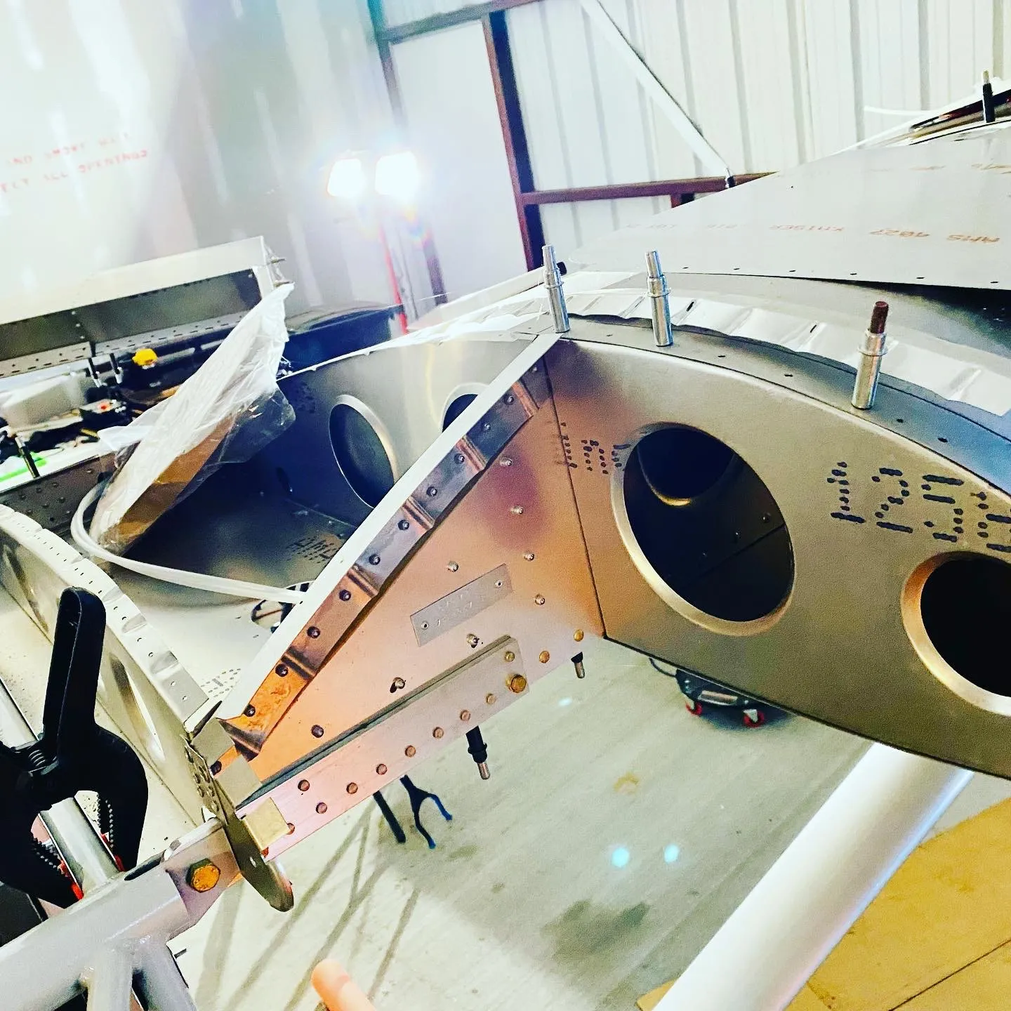 Starting to have that fall feel in here. Early morning wing root section work. The answer to when will the plane be done: when there are no more things left on the todo list.