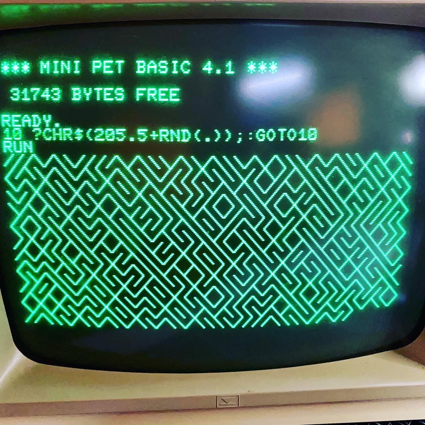Always loved a green phosphor monitor for the PET. Took a risk of tearing apart the universe by putting my MiniPET on an Apple monitor. Seems like we’re all still here so far. #apple #commodore #10Print