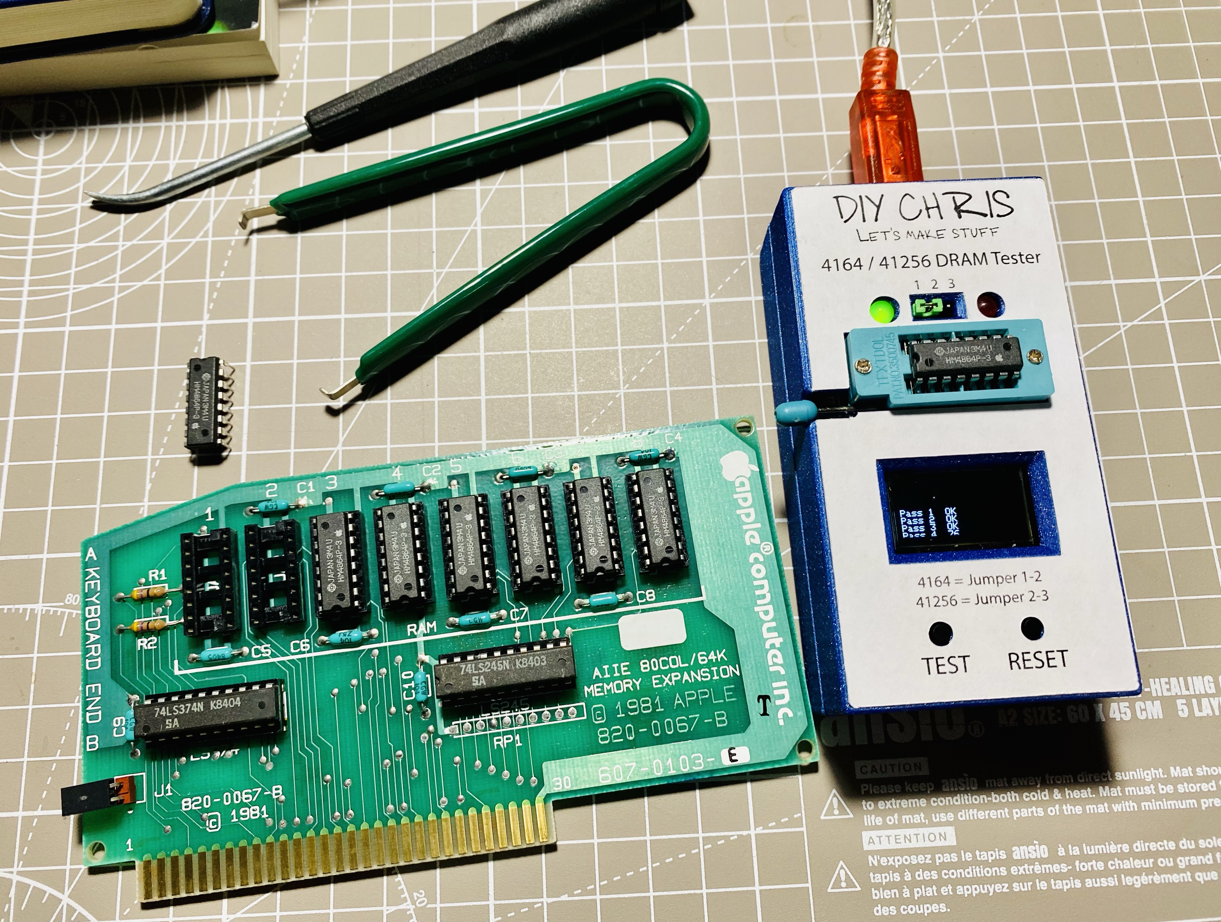 Got an Apple II 80 col/64k expansion card failing a RAM diagnostic. I have at least 4 testers for this type of RAM and plenty of spares.