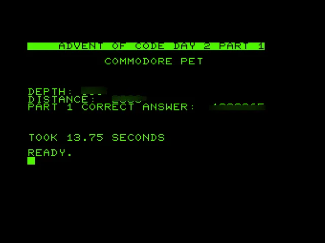 Blurred my answers ;-) Weapon of choice for #AdventOfCode Day 2 is the #commodore #PET #AdventOfCode2021
