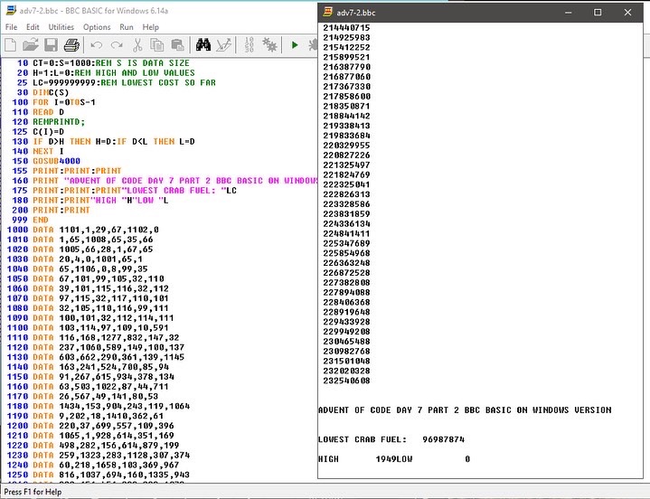 Part 2 of #AdventOfCode Day 7: my rough estimate is that my current code will run for… well a LONG time on a lowly #C64. So what to do… I know! Run the exact same code on BBC Basic on a 2.6Ghz i7 in 60 seconds ;-) Cheating? Maybe. Am I happy anyway? Yes #commodore #BBCBASIC