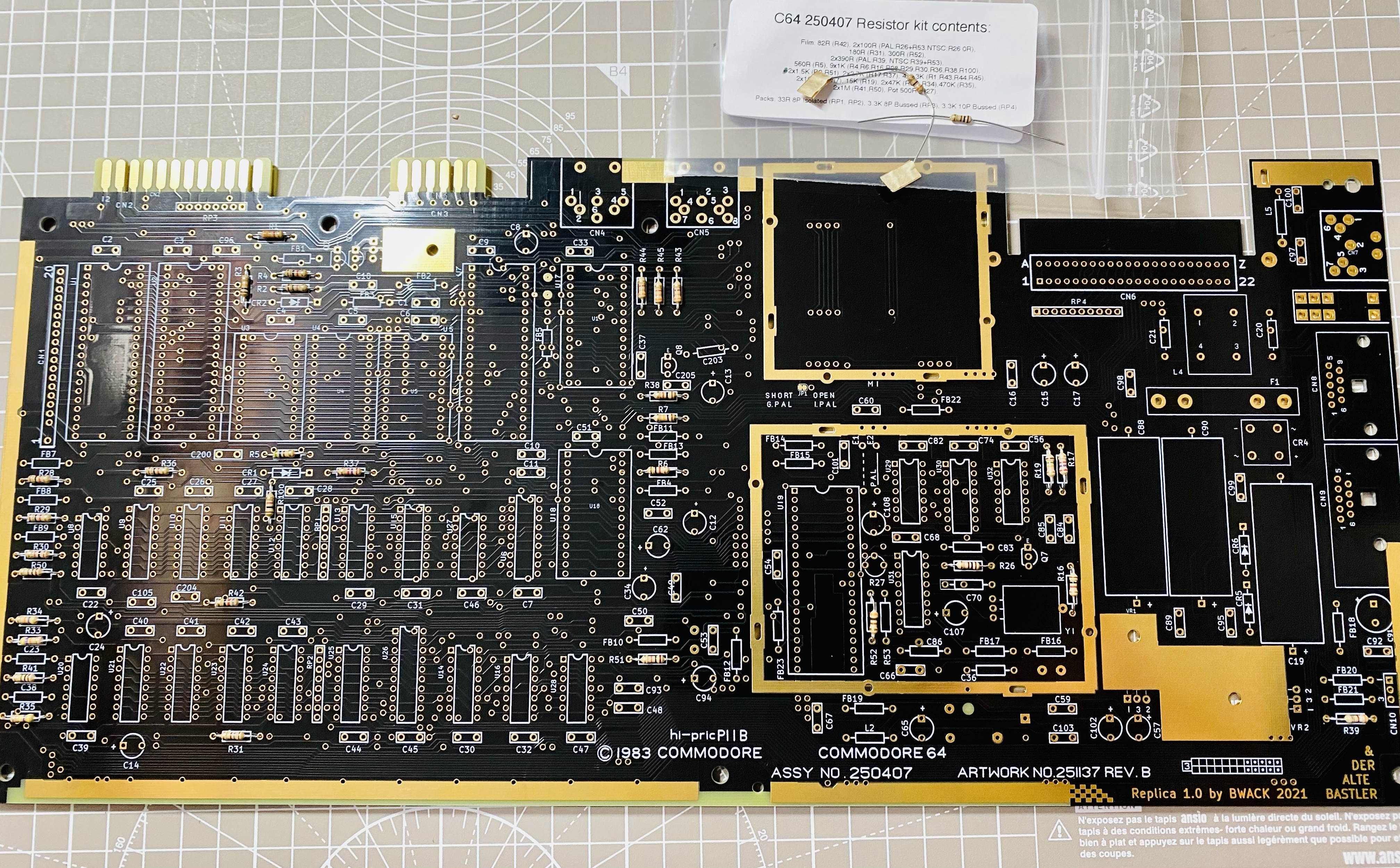 Alright, resistors are all placed. I’m leaving two out until I decide if this is going to be a PAL or NTSC board. #commodore