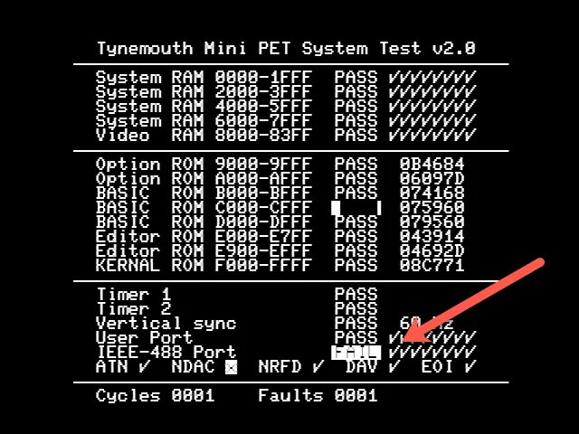 Hmm, getting a fault on my MiniPET 40/80 on the IEEE port. Anyone know if this needs a loopback to pass or is this really a fault? #commodore