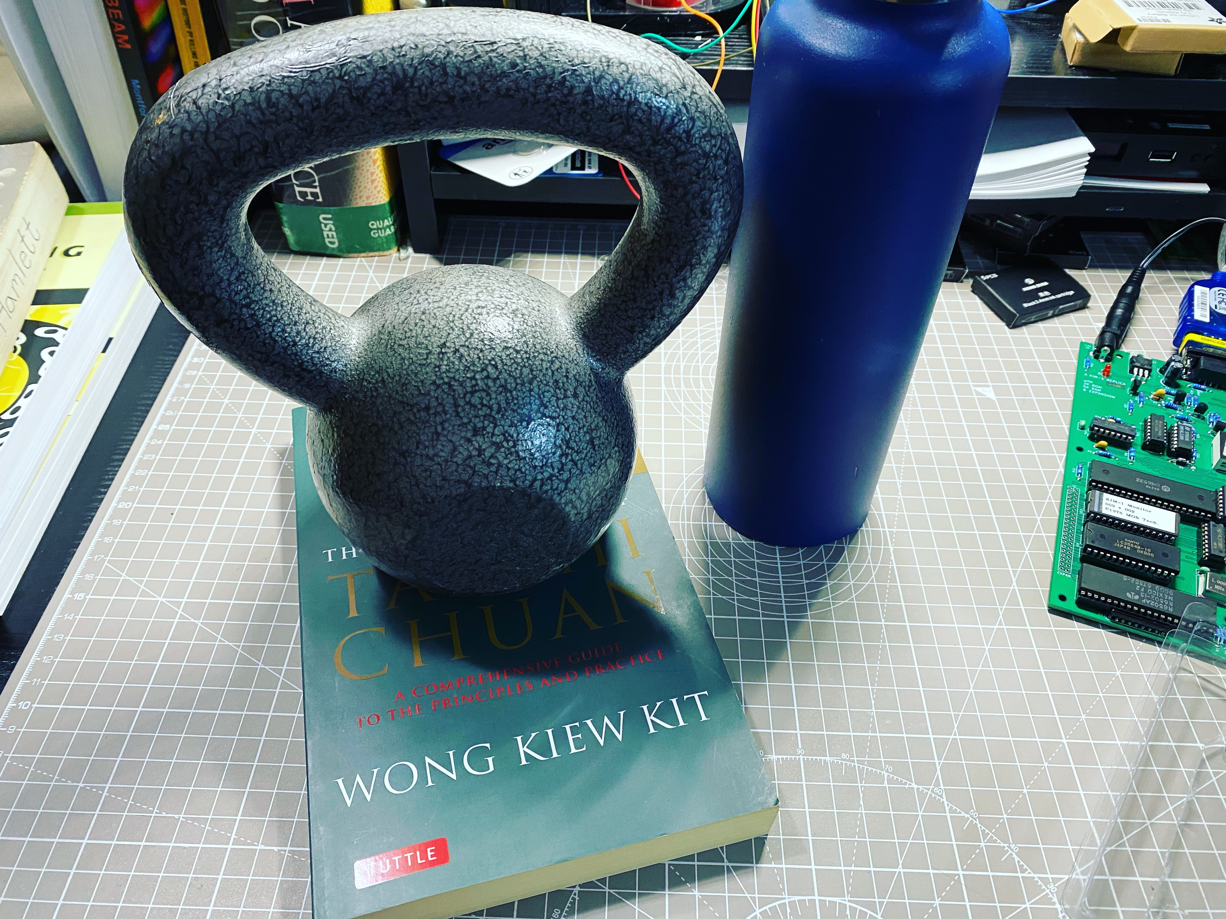 Putting a kettlebell ON my desk means it’s a constant reminder. Every hour during work it’s 20 push-ups and kettlebell work. Worked great!