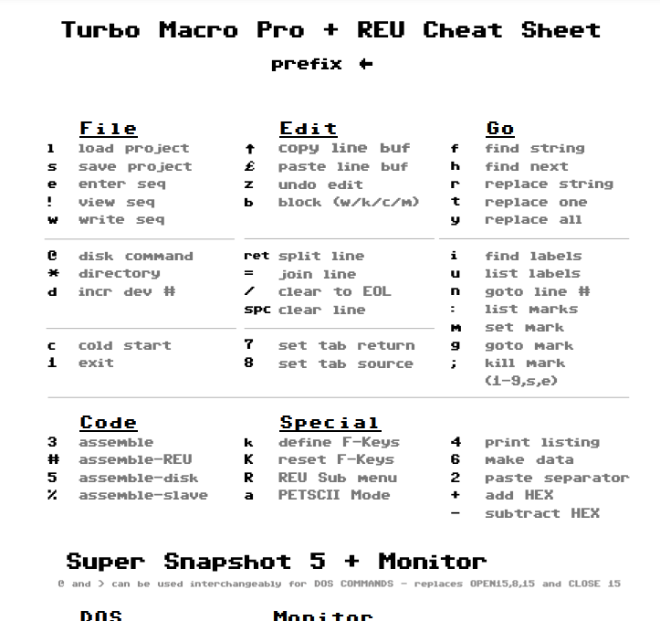 Made some changes to the Turbo Macro Pro / Super Snapshot Cheat sheet based on input from @K0FFY_Radio #commodore