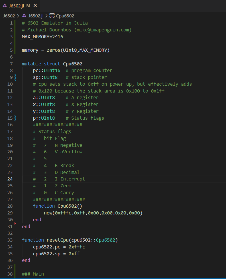 Alright, going outside for the rest of the day but I promised myself I'd go from novice to expert(ish) in @JuliaLanguage in 2022 so I needed a project I want to work on. Implementing a 6502 emulator seemed pretty natural to get started ;-)