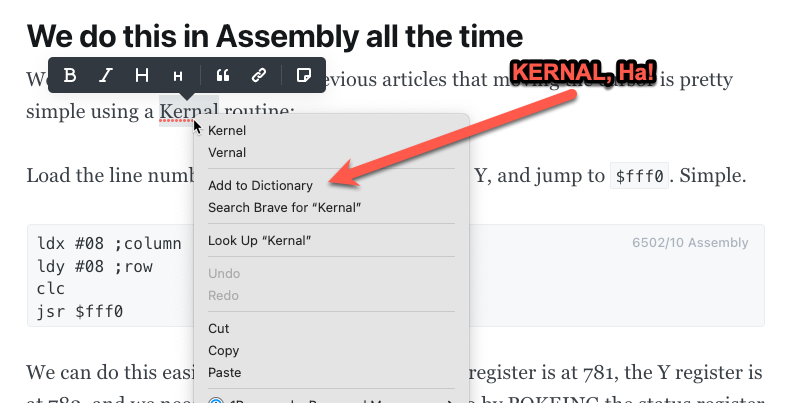 Writing an article and occurred to me I need to add a word to my Mac dictionary... #commodore