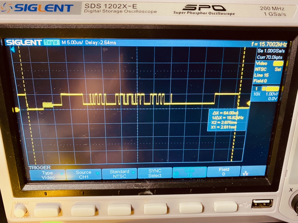 Well that.. DEFINITELY looks like a Composite video signal (PAL). Woot! Now on to the interlace math and the NTSC version. Urg, do we REALLY need interlacing? VGA is SO much easier... #commodore #vicsrevenge