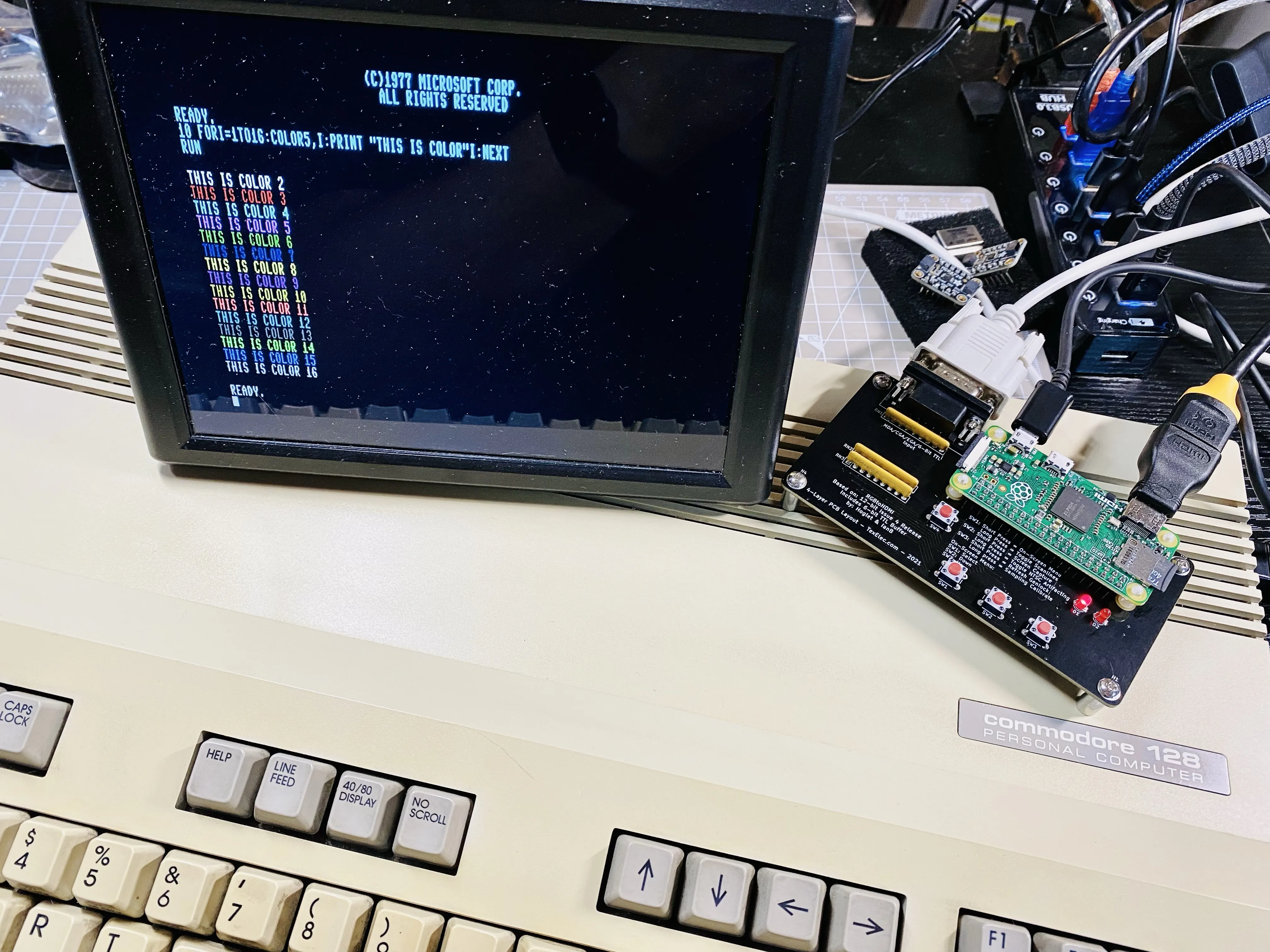 I have tried about a half dozen solutions to get reasonable color 80 columns out of my flat Commodore 128. The RGBtoHDMI is hands down the winner here. #commodore