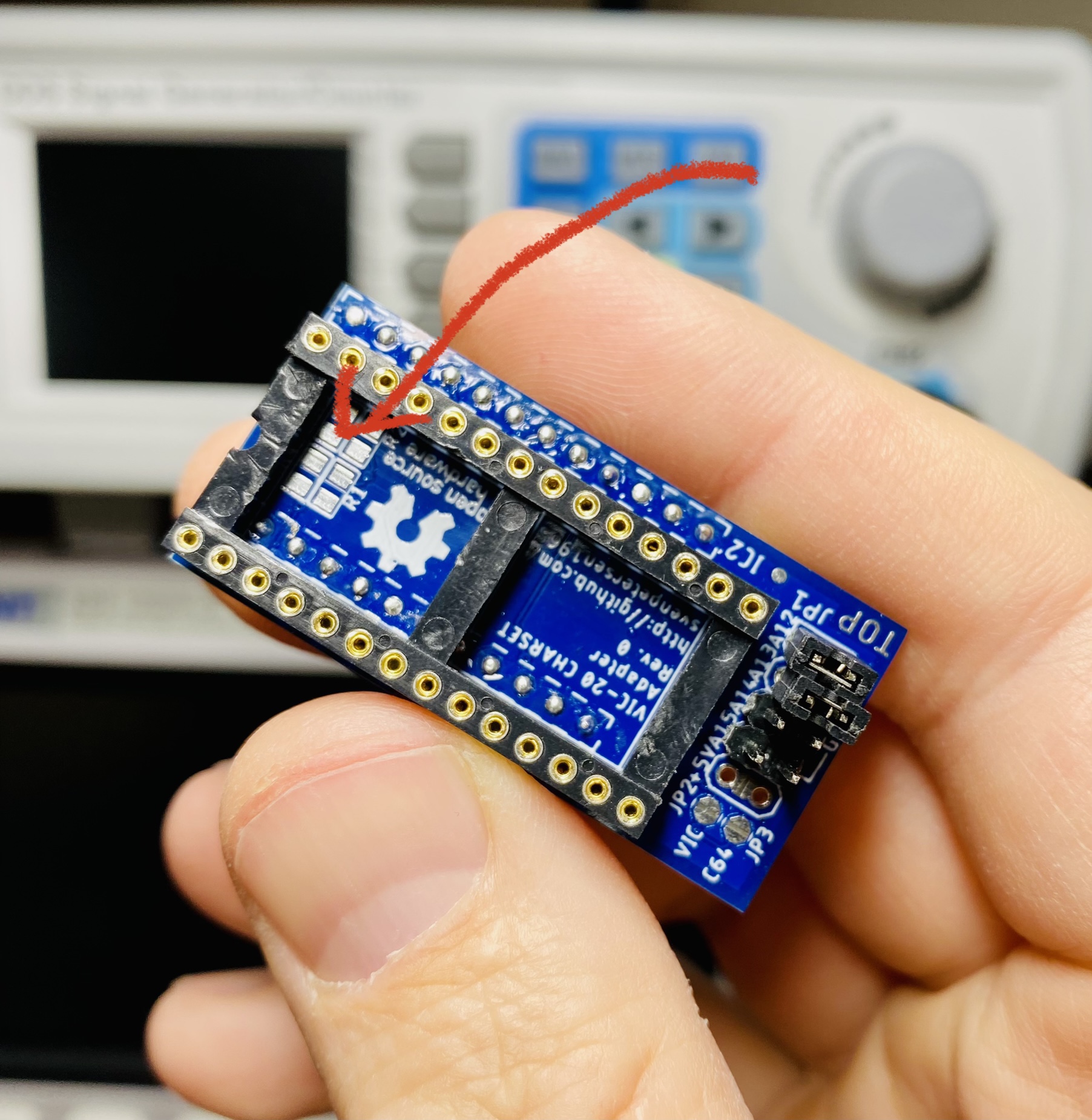 Fixing a friend’s VIC-20 and I hastily assembled a character ROM adapter. I then spent an embarrassing number of Mississippi’s wondering why it didn’t work. Details Michael, details. #commodore