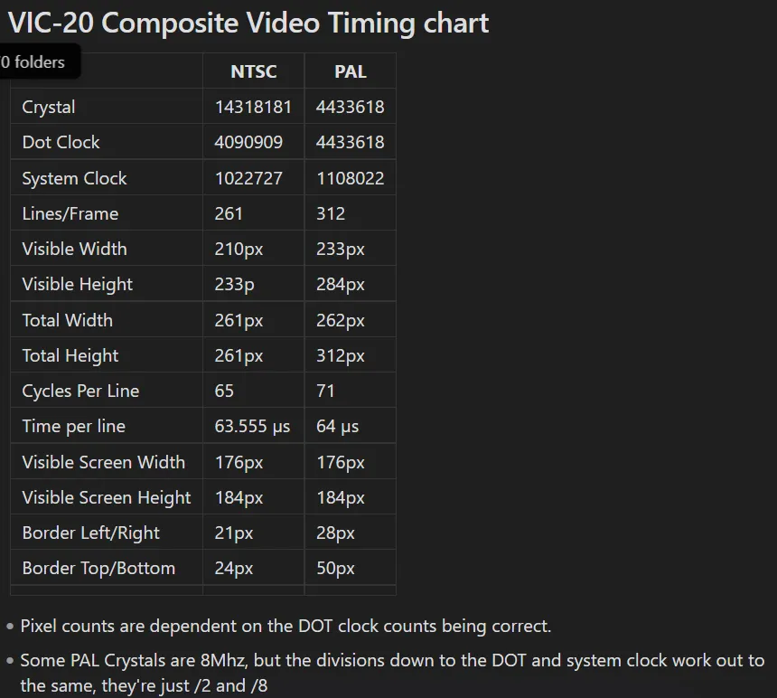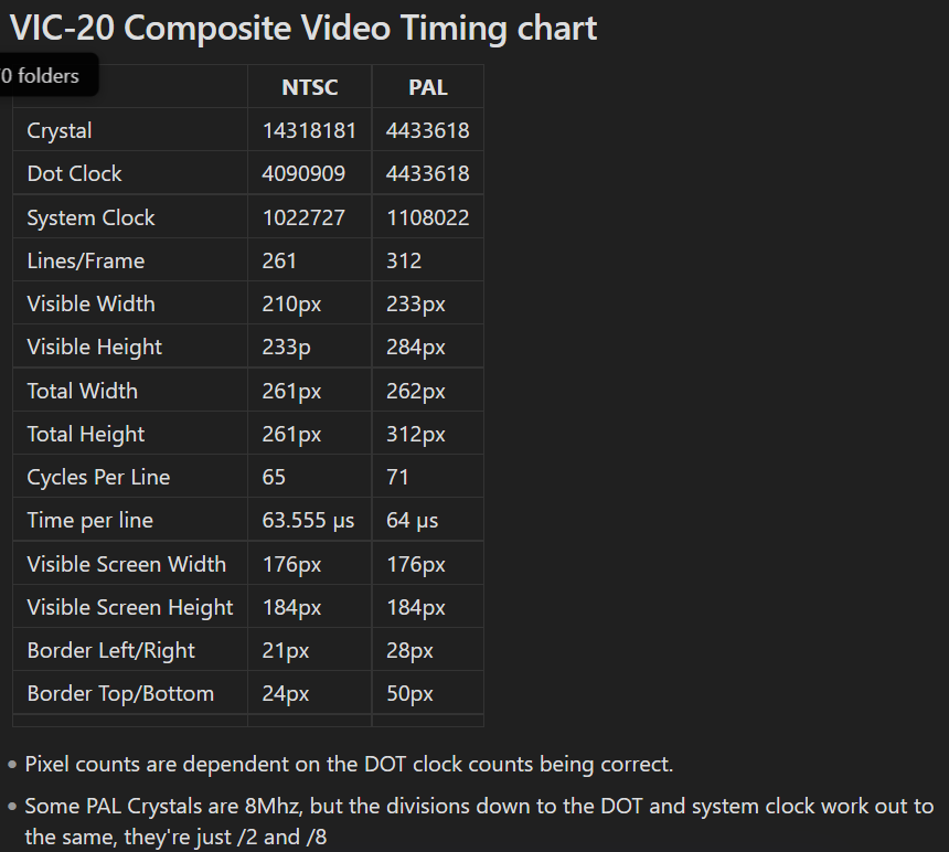 I'm still SUPER tempted to use VGA instead of composite for the VIC-20 VIC replacement. Much of this is known but in multiple places. Probably will make a dedicated page for all of the calculations I do for myself. If others can use it, then cool. #commodore