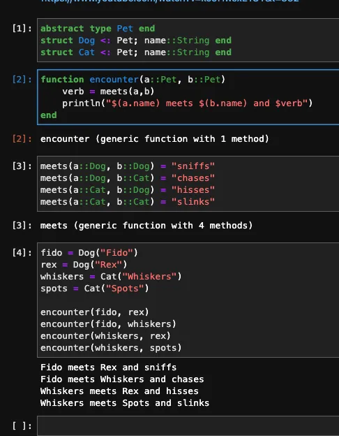 Multiple Dispatch is kinda @JuliaLanguage 's super power. Never really grokked it until I followed this example. Mind explodey.
