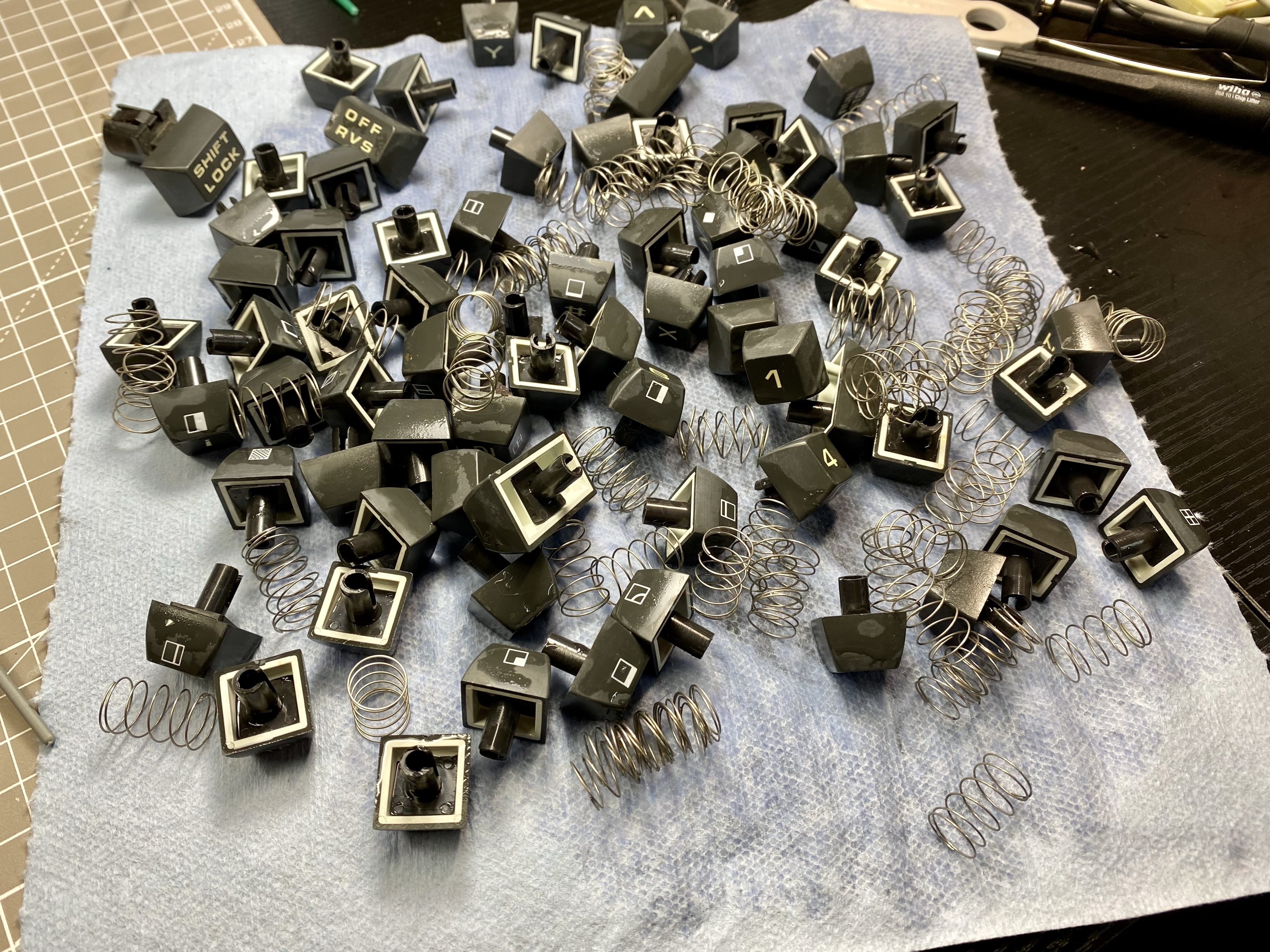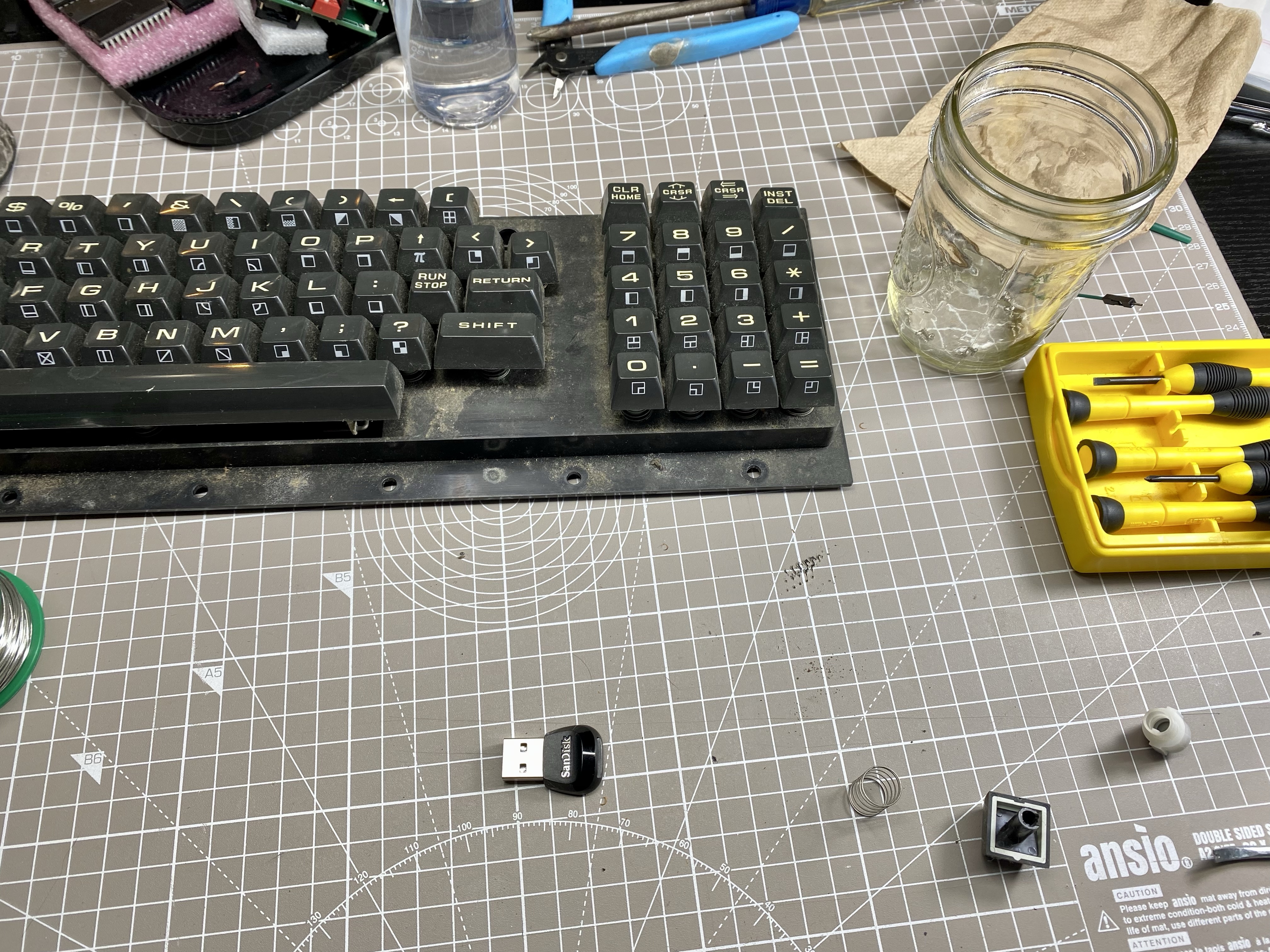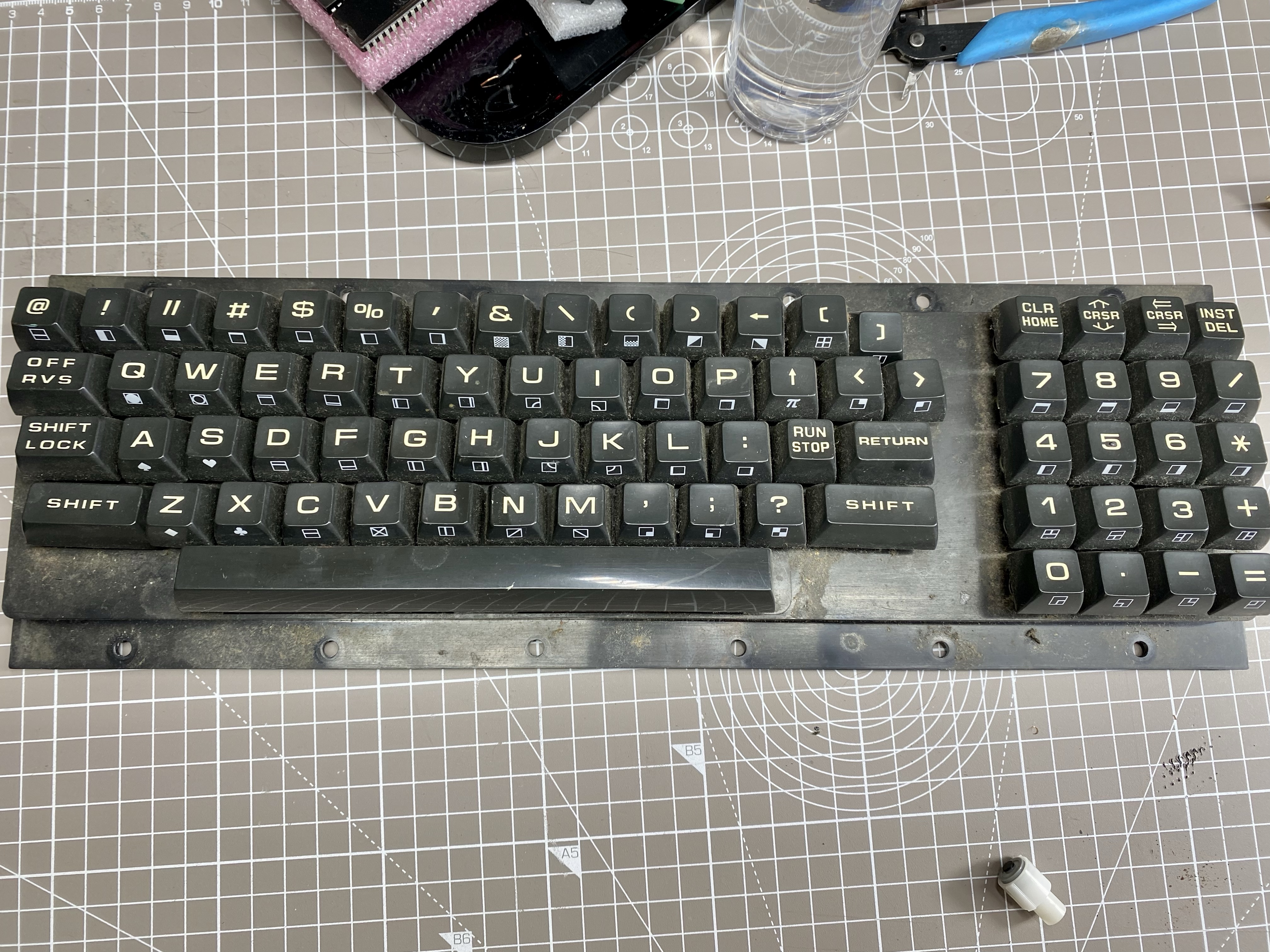 Not a single key on this PET keyboard worked so they are getting the full treatment. Be good as new after the 24 hour drying period for the conductive coating. Gave everything a bath while I wait. #commodore