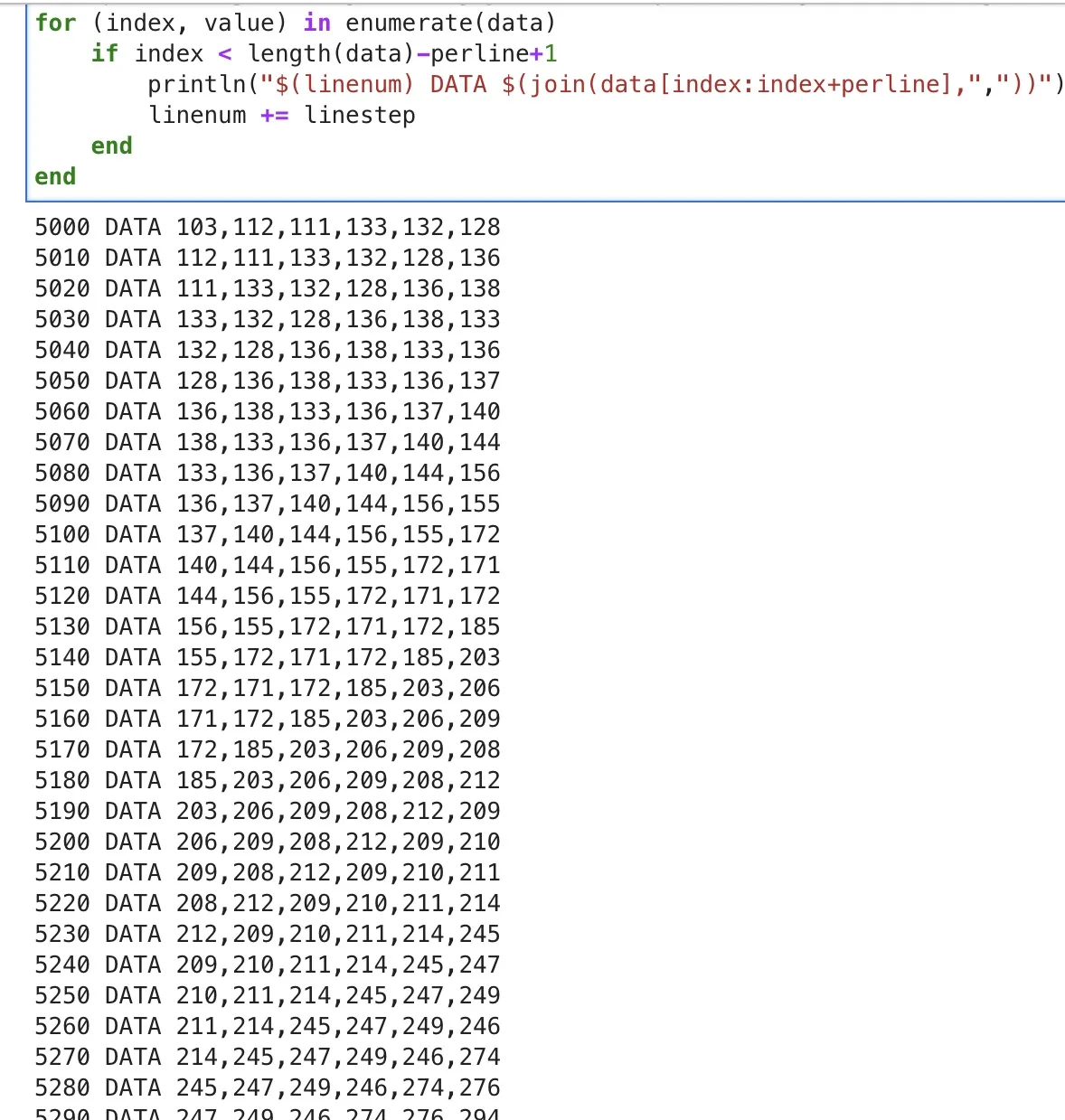 Everyone uses @JuliaLanguage to create data statement sets to do calculations on vintage BASIC machines right? I can’t think of a better use for modern computers than the assist for their elders. Happy Monday!