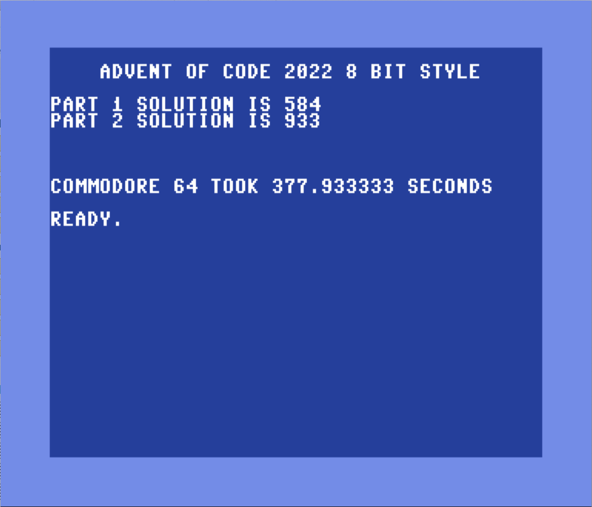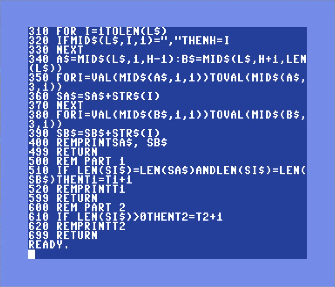 I spent WAAAY too long today figuring out #AdventOfCode Day 4 on the Commodore 64, but it works. Took me 10 minutes to write my solution in Julia this morning and 3 hours this evening to write it for the #commodore. Probably can't spend that kinda time on work days, though. Fun!