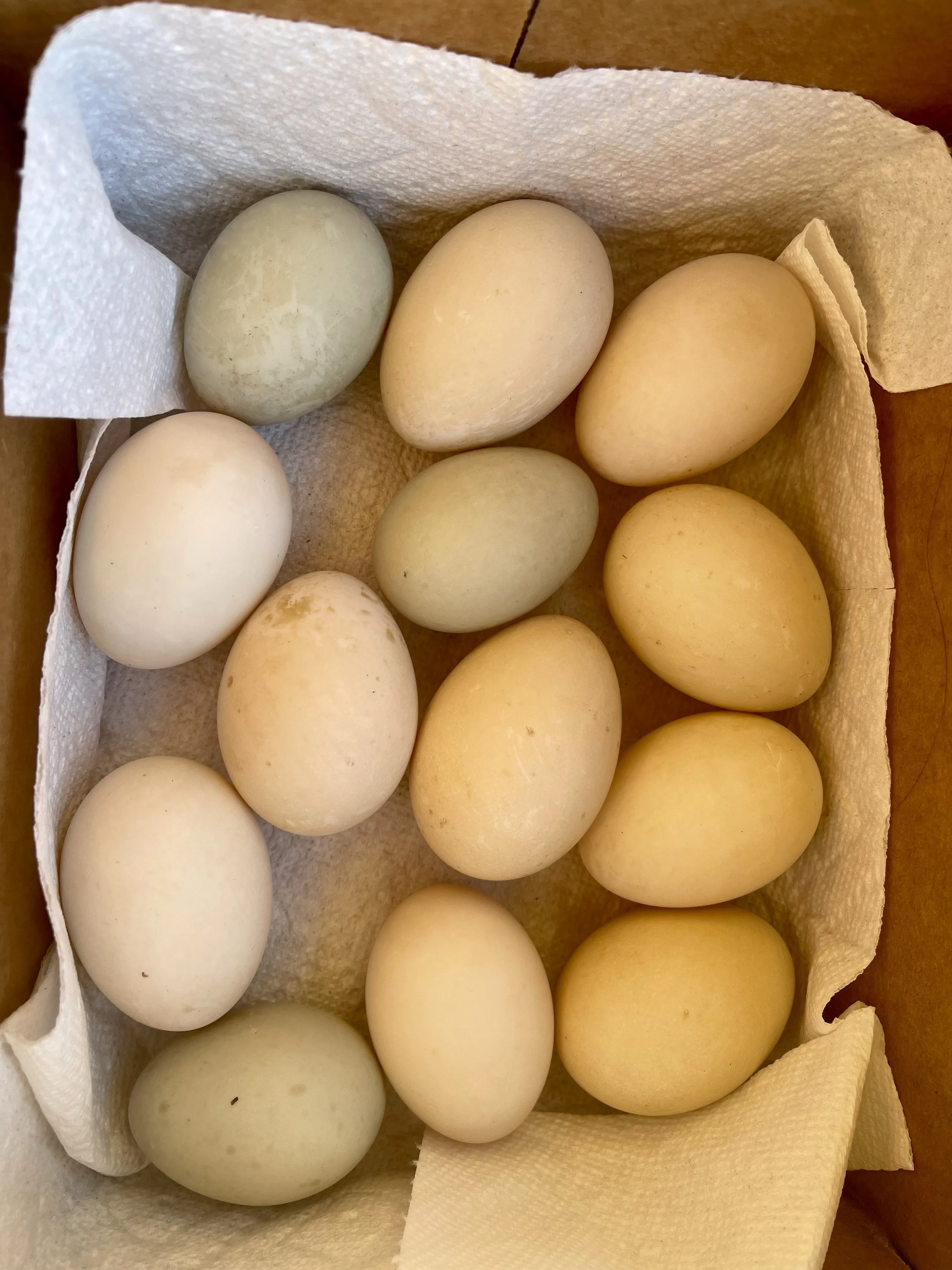 Our neighbor’s ducks are laying eggs faster than she can eat them. This is a good thing for us :)