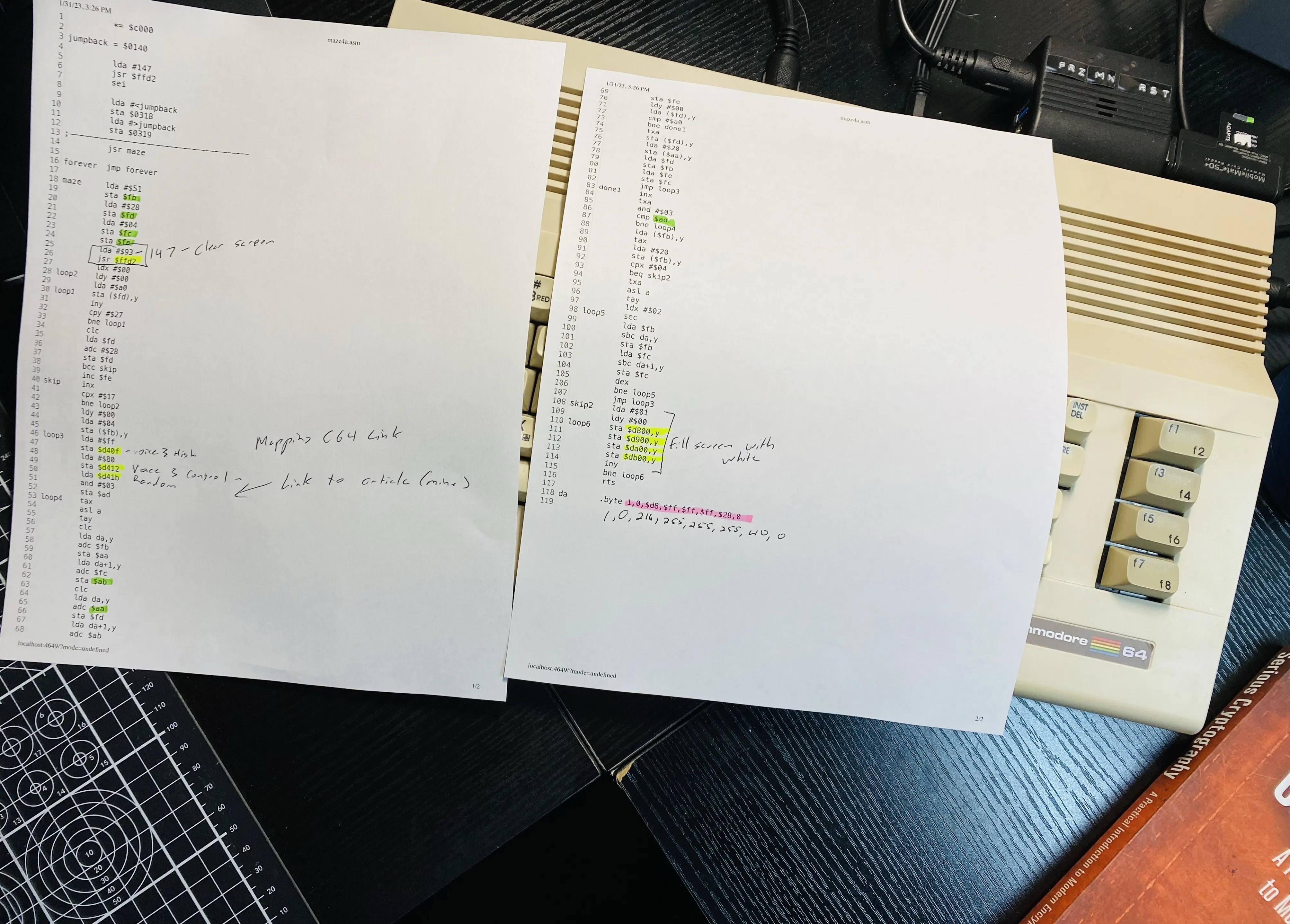 Breaking down someone else’s old assembly code that I converted into Turbo Macro Pro format. Surely I’m not the only person who would rather reverse engineer assembly by printing it out right? #commodore #6502forever