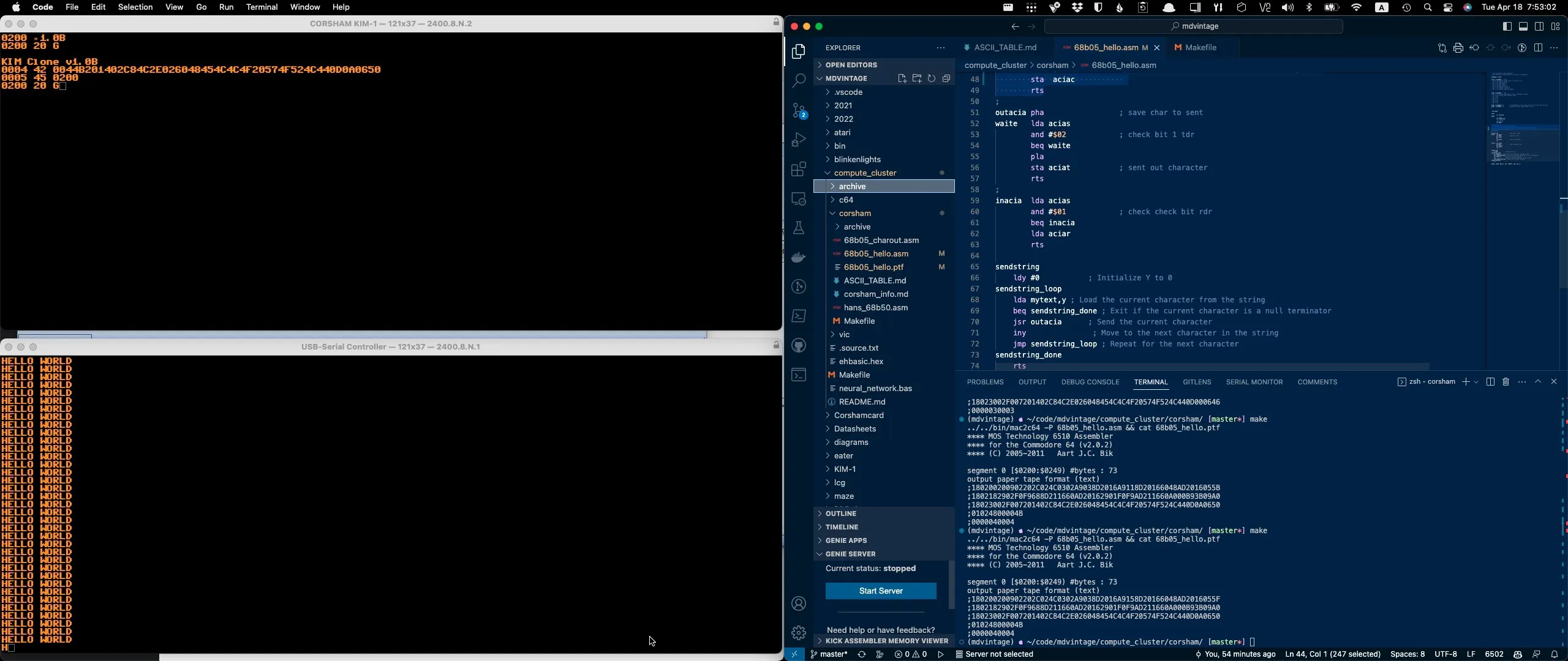 Shout out to @HansOtten for pointing me in the right direction to get the 68b50 ACIA sorted out on my Corsham KIM-1 clone. The retro community is awesome. Actually could be an interesting choice for the Control Node on my 6502 cluster system. Hmm…