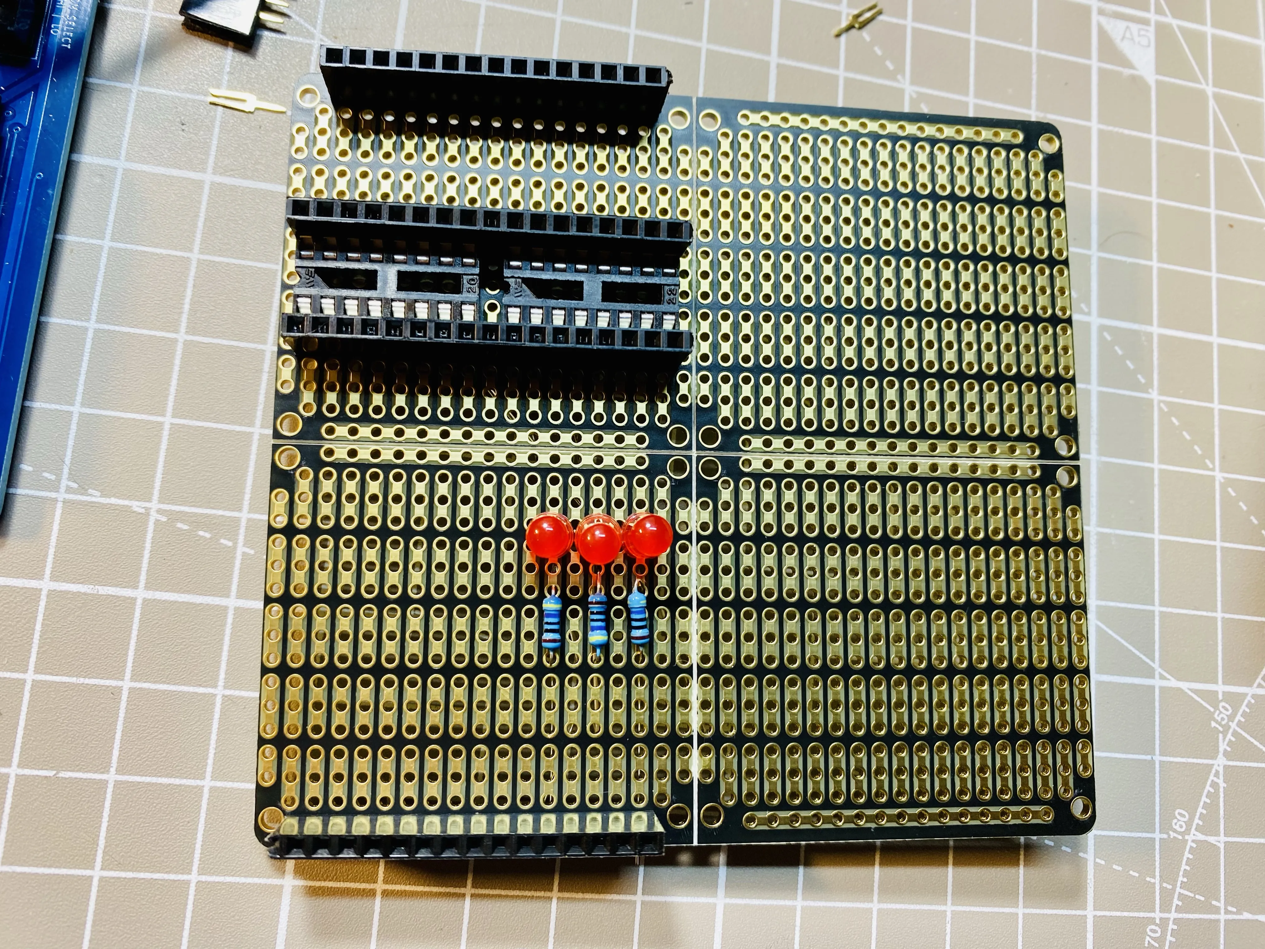 Moving my serial multiplexer hack to a more permanent ish setup. I really dig these gold and black proto boards.