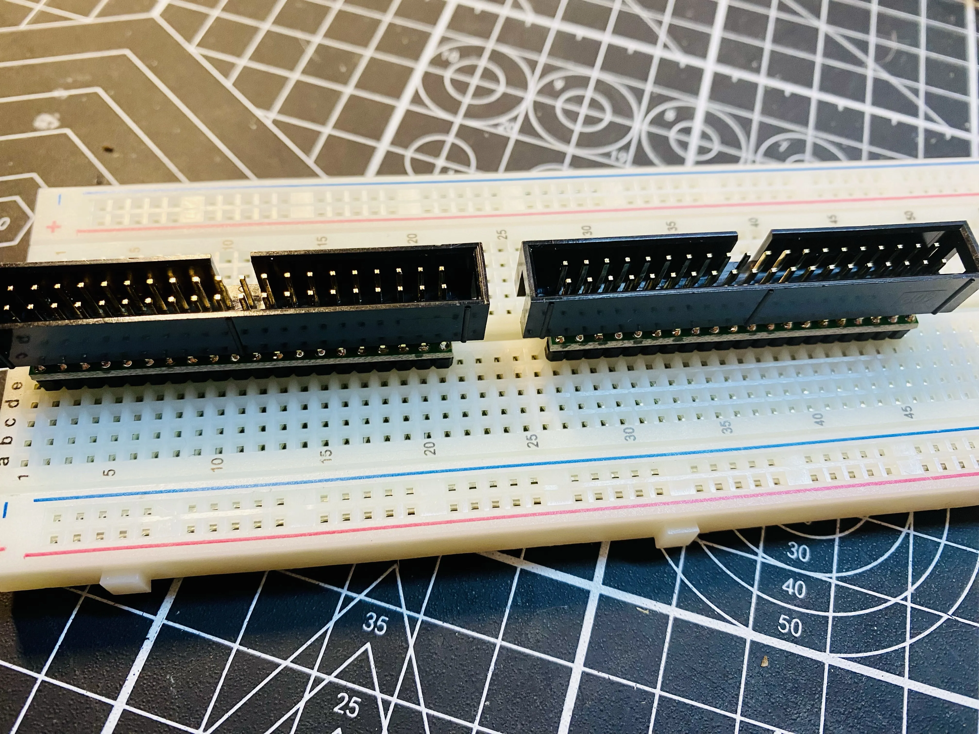 Finally found breadboard IDC connectors that actually stay in breadboards