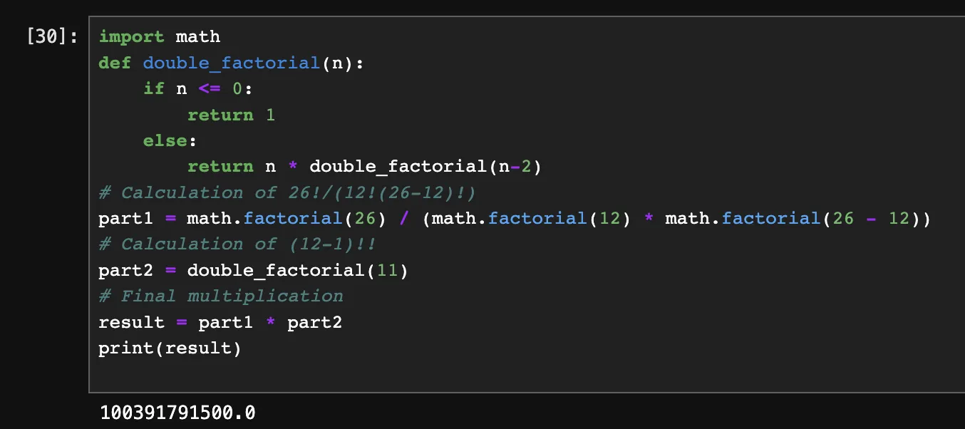 Since Python doesn’t have a double factorial, this worked. Any guesses on what this calculation is?