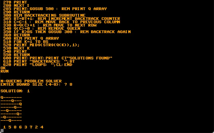 N-Queens solver is working great on the KIM-1. Now to finish the article ;-)