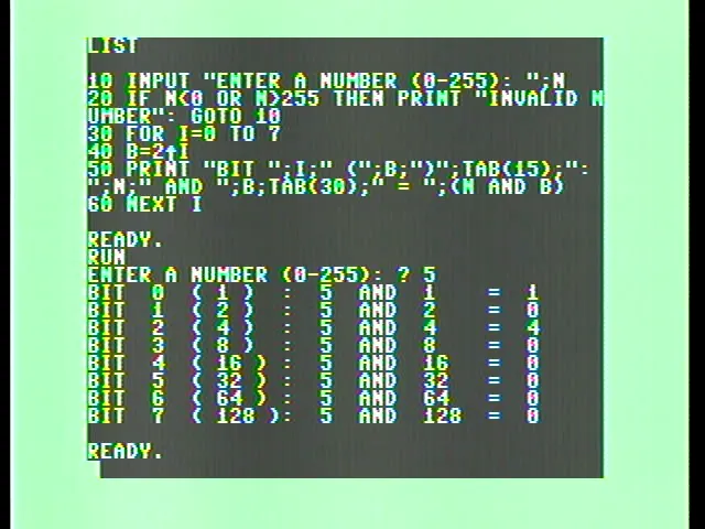 Working on a Two’s Compliment explanation for a presentation. The Commodore BASIC AND operator is technically a logical AND, not a bitwise AND. But you can use it to check if bits are set, so it IS bitwise AND in the right hands ;-) Happy Tuesday!