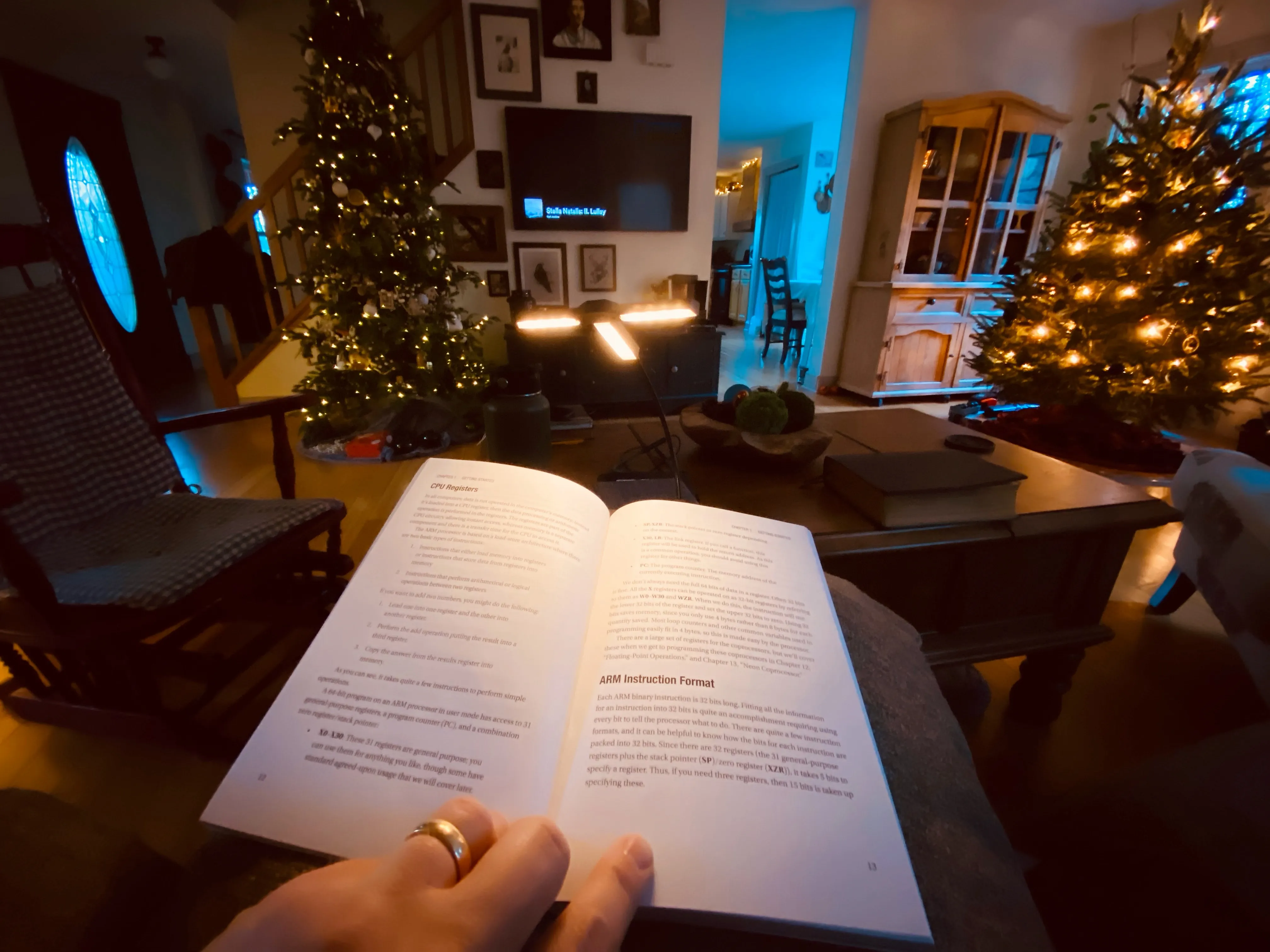 A little light ARM assembly reading this morning. And yes, we have three Christmas trees. You’re not the boss of us.