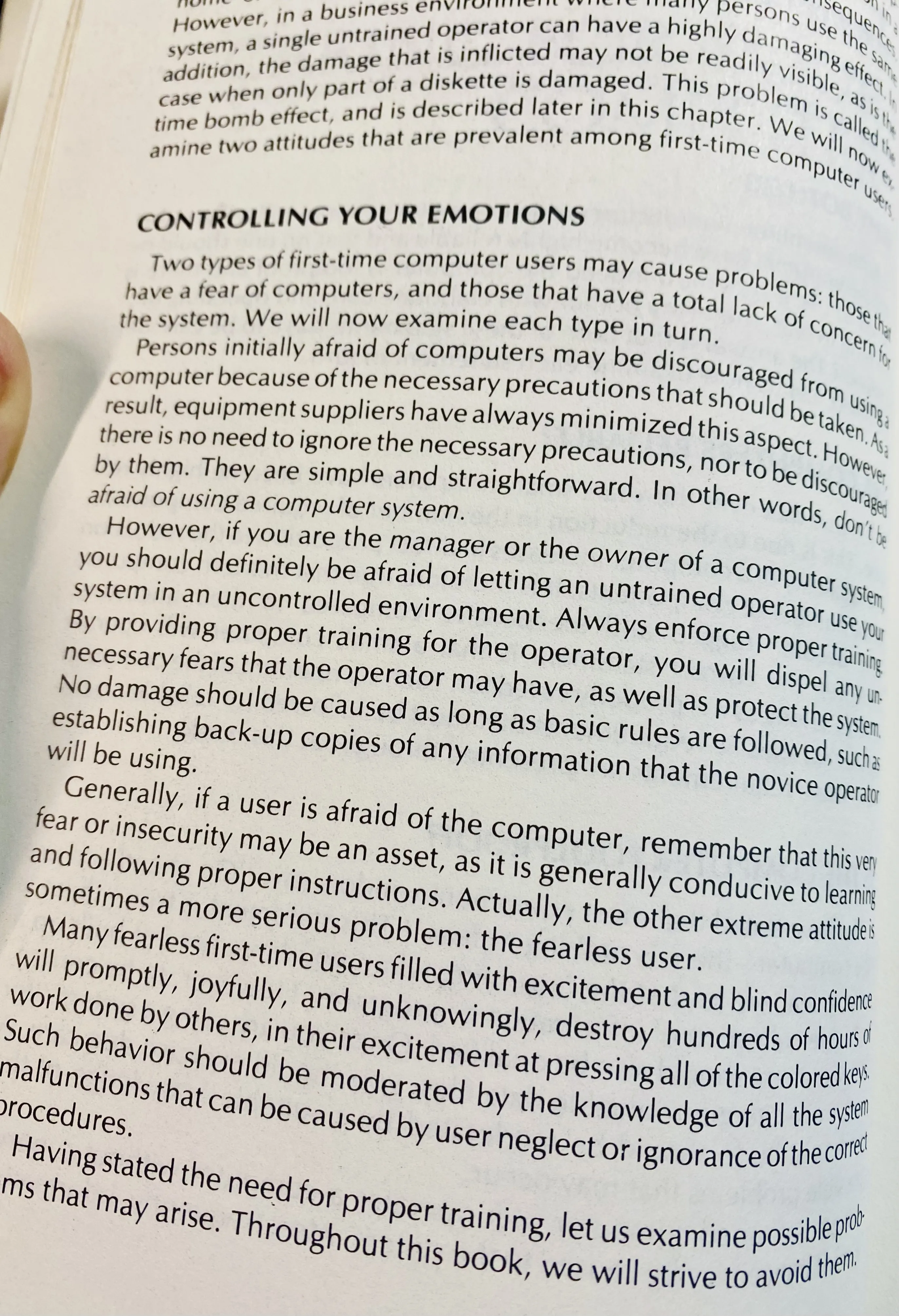 This "Caring for your Computer" book by Rodnay Zaks/Sybex from 1981 has some EXTREMELY RELEVANT life advice for 2024. Control your emotions... brilliant.